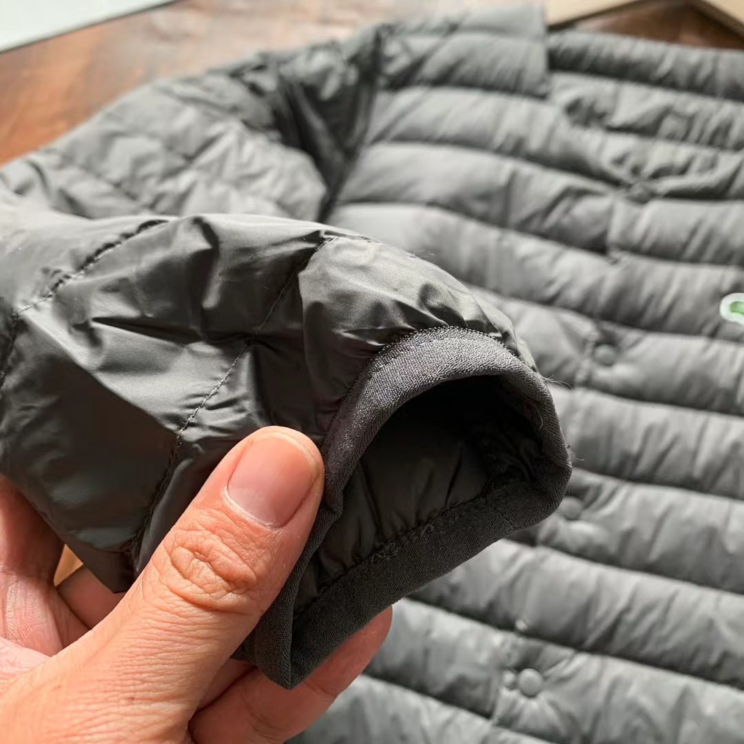 秋冬新款无领休闲轻质保暖防泼水羽绒服原厂定制面料 面料经过特殊工艺处理,持久保持整体的垂感以及贴合度,透气舒适度堪达百分 百。低奢的味道扑面而来,细节之处更是非常用心,口袋下方的五金件点缀恰到好处。包边走线采用无缝工艺技术,拱针对条工整精细,无可挑剔,肩部与腰线处理相当丸美,剪裁修身合体,符合人体醉佳工学设计。再强调一次,好东西,错过请等明年。