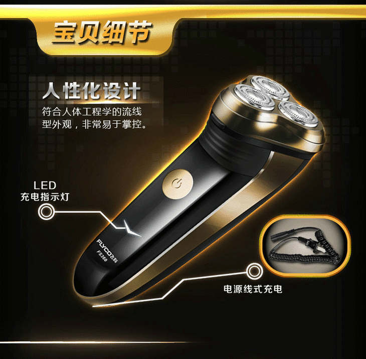 【家用电器】飞科FS360充电动剃须刀三头刮胡须刀土豪金