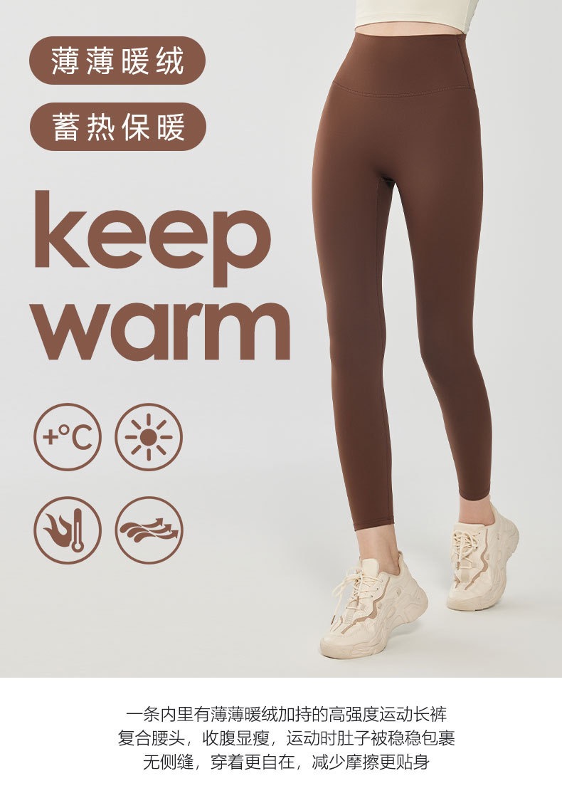 锦氨加绒瑜伽裤女高弹薄绒运动紧身裤秋冬保暖蜜桃臀健身打底裤女BMMZ-228