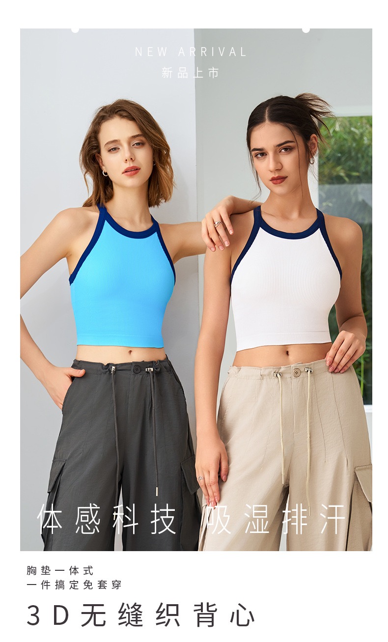 【固定杯】2025新款撞色高弹运动内衣女防震健身文胸瑜伽服背心 MG WX2436