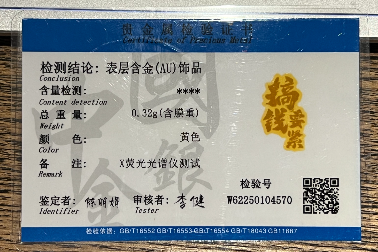【内含】:999足金手机贴x1,证书x1,祈福卡x1,绒布袋x1
