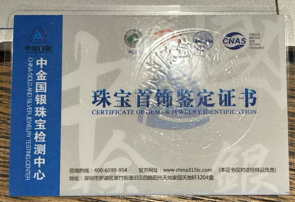 ▲珠宝首饰鉴定证书【背面】 带钢印
