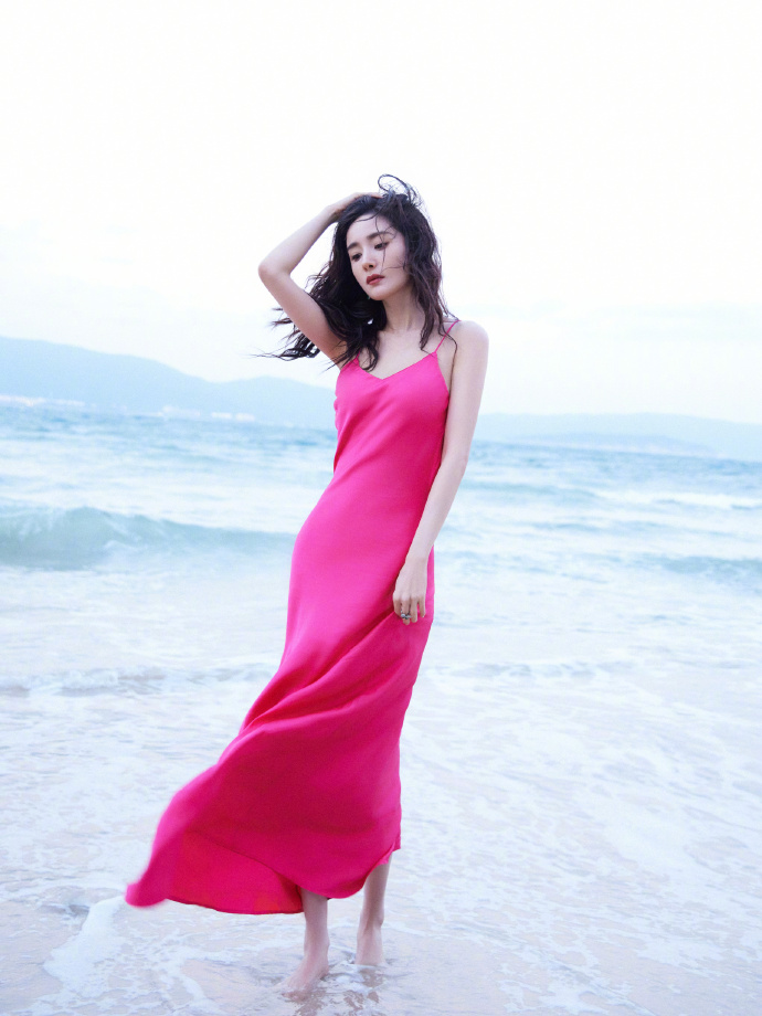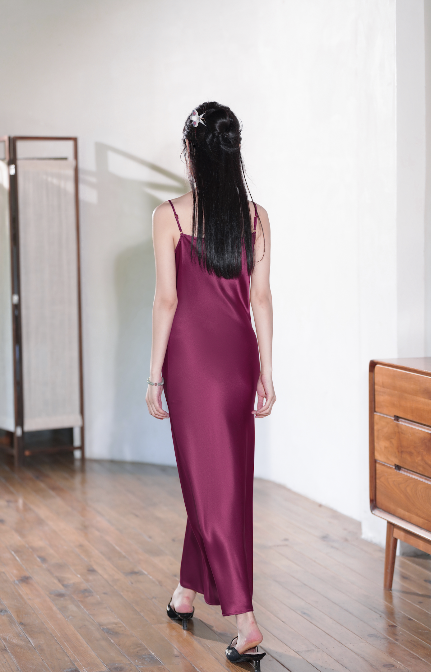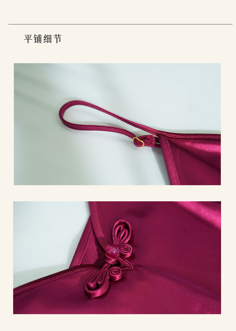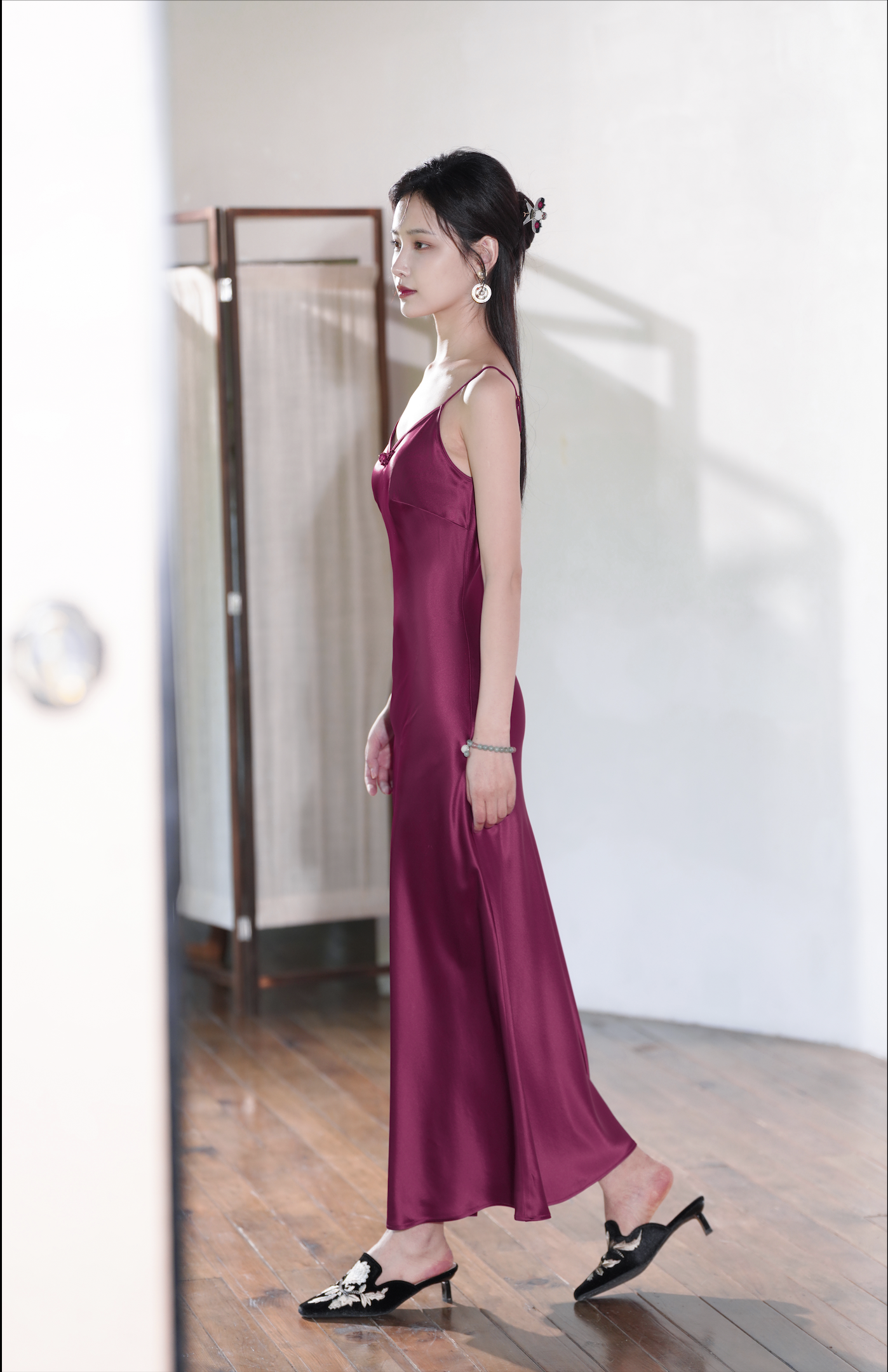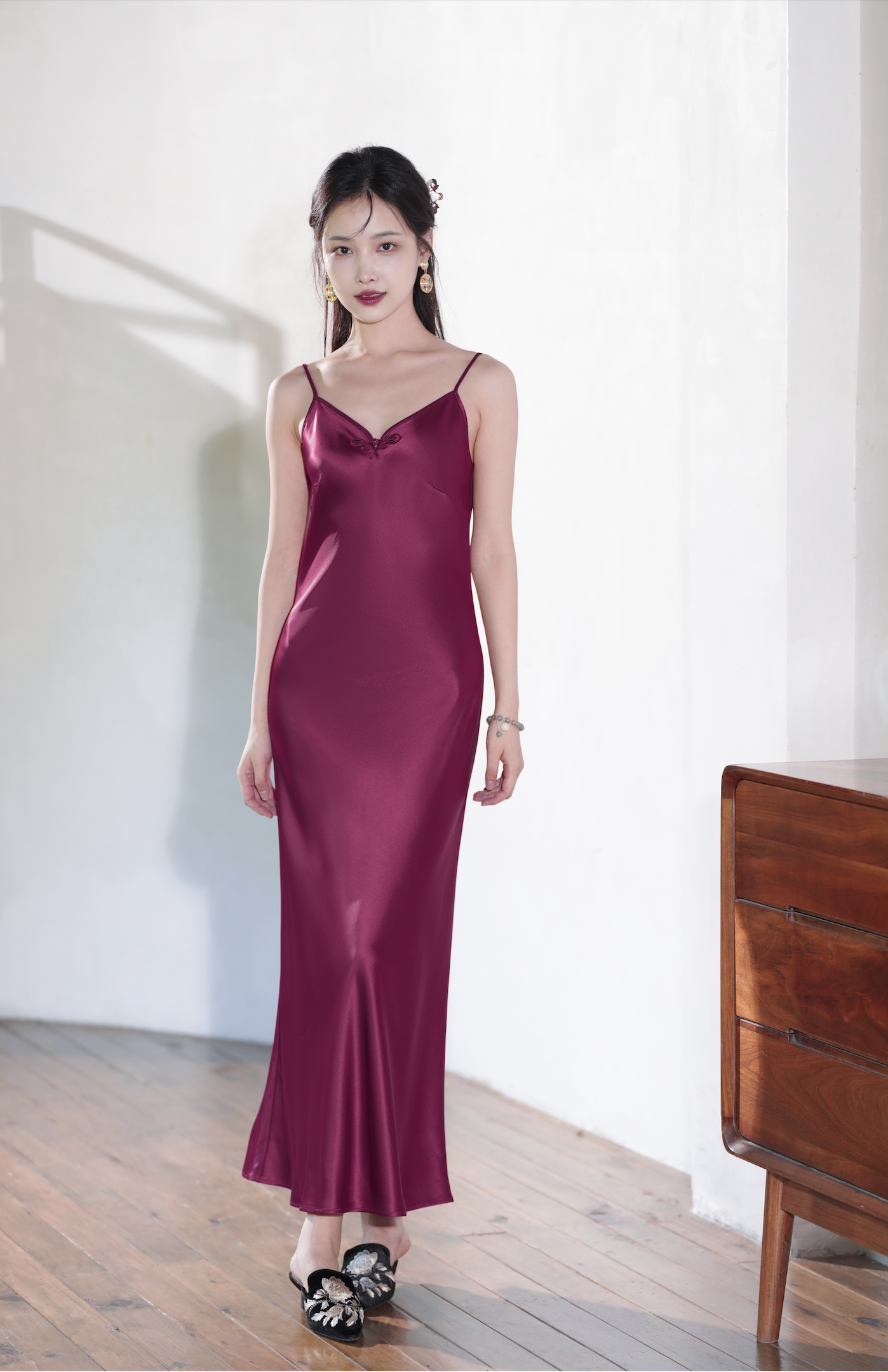 #“小蛮腰”玫红色醋酸吊带长裙「兰蔻」