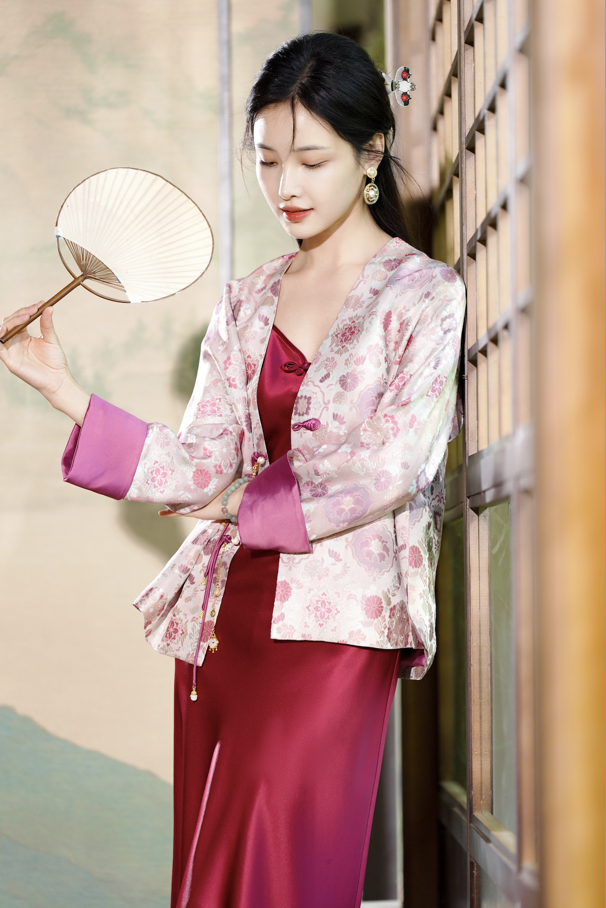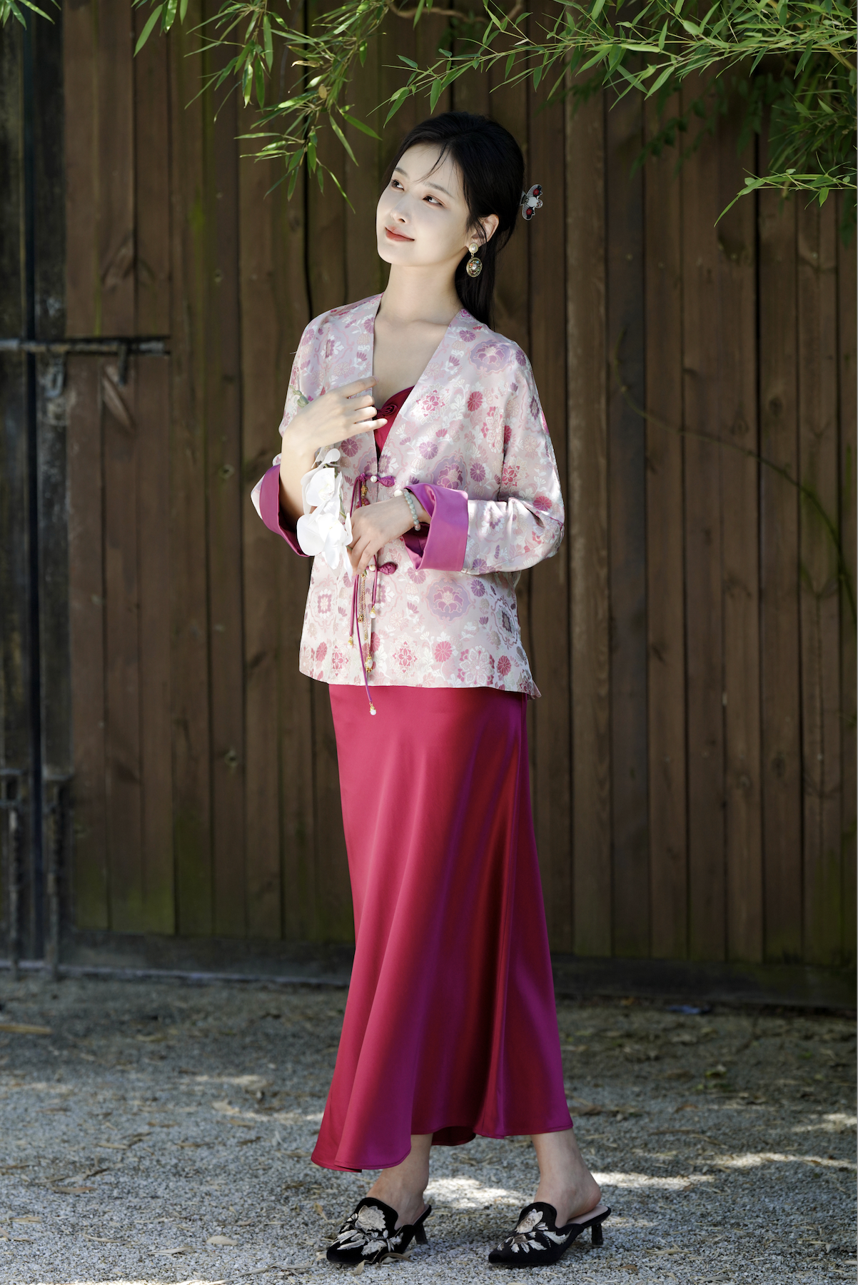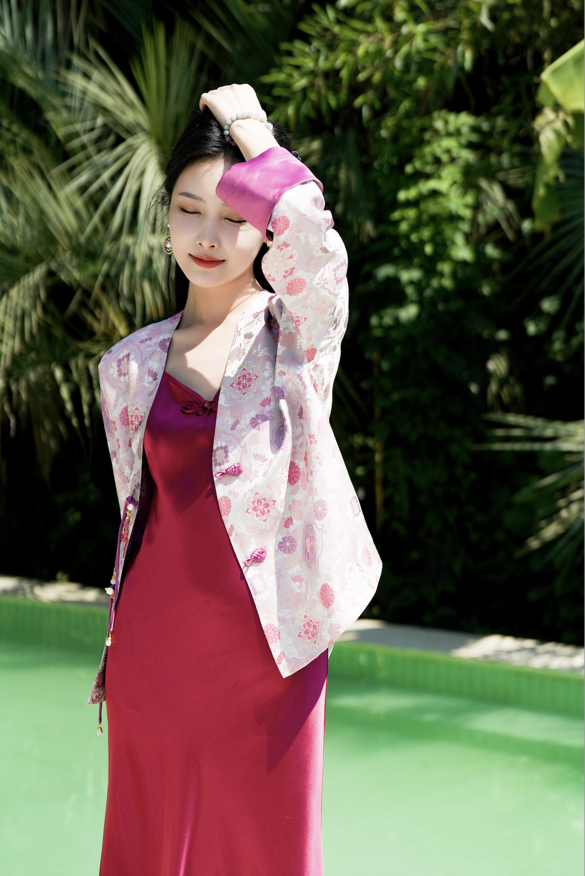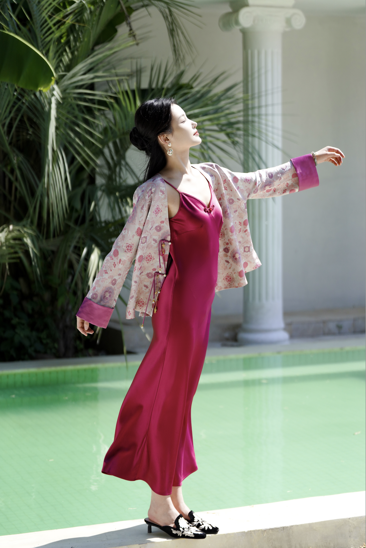 如同在身上镀了一层鎏金,明媚而自由,优雅且浪漫。选用含高成分的醋酸面料,自带高级光泽感,散发出高贵迷人的慵懒魅力。