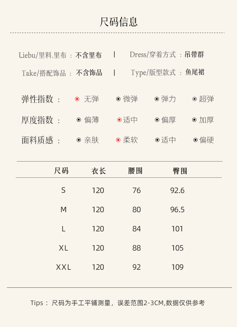 下摆呈现自然的鱼尾效果,对于有些想尝试吊带的梨形妹妹也很友好。