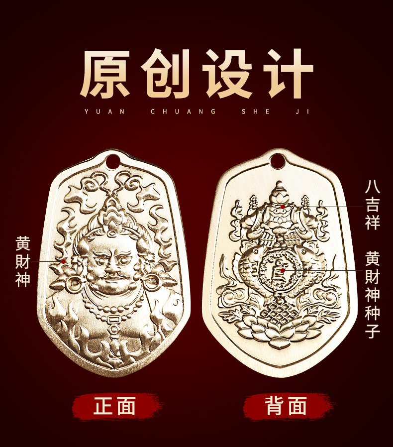 黄铜黄财神八吉祥令牌