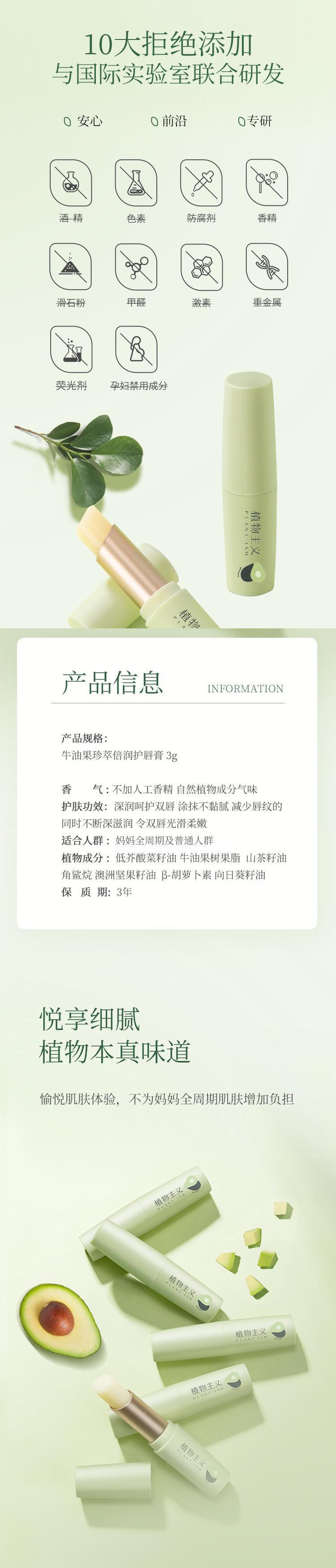 植物主义牛油果唇膏 补水植物唇膏男女保湿滋润唇膜润唇膏