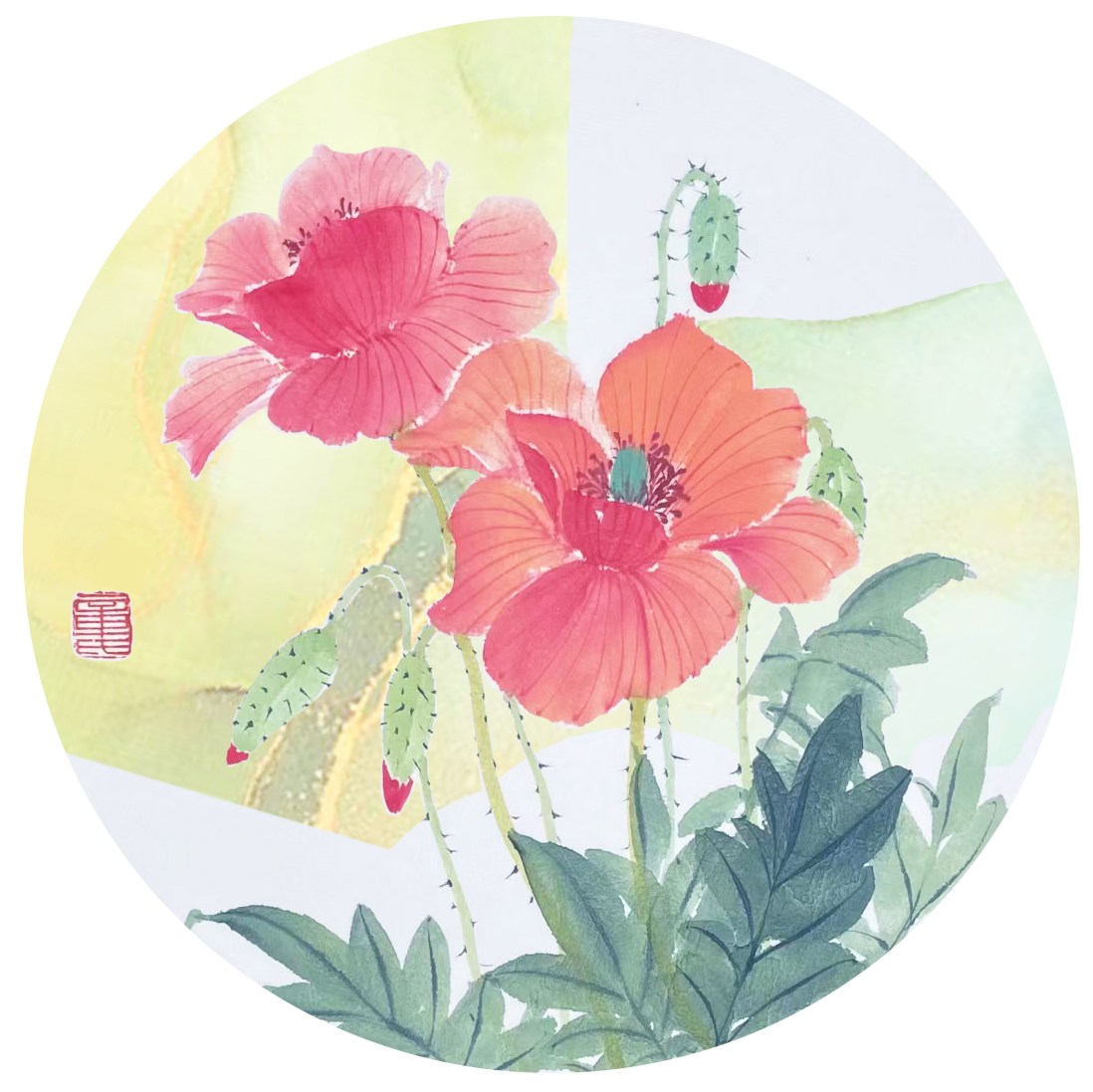 本次课程通过鎏金彩宣纸与中国花鸟画的碰撞,尝试探讨材料的各种可能。