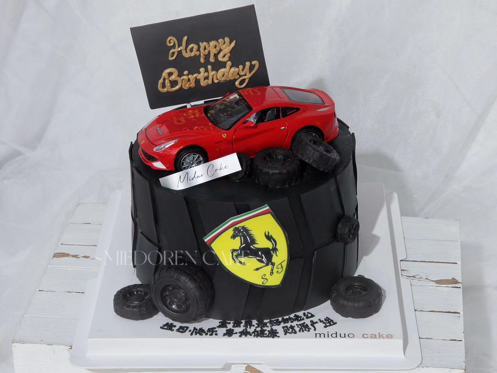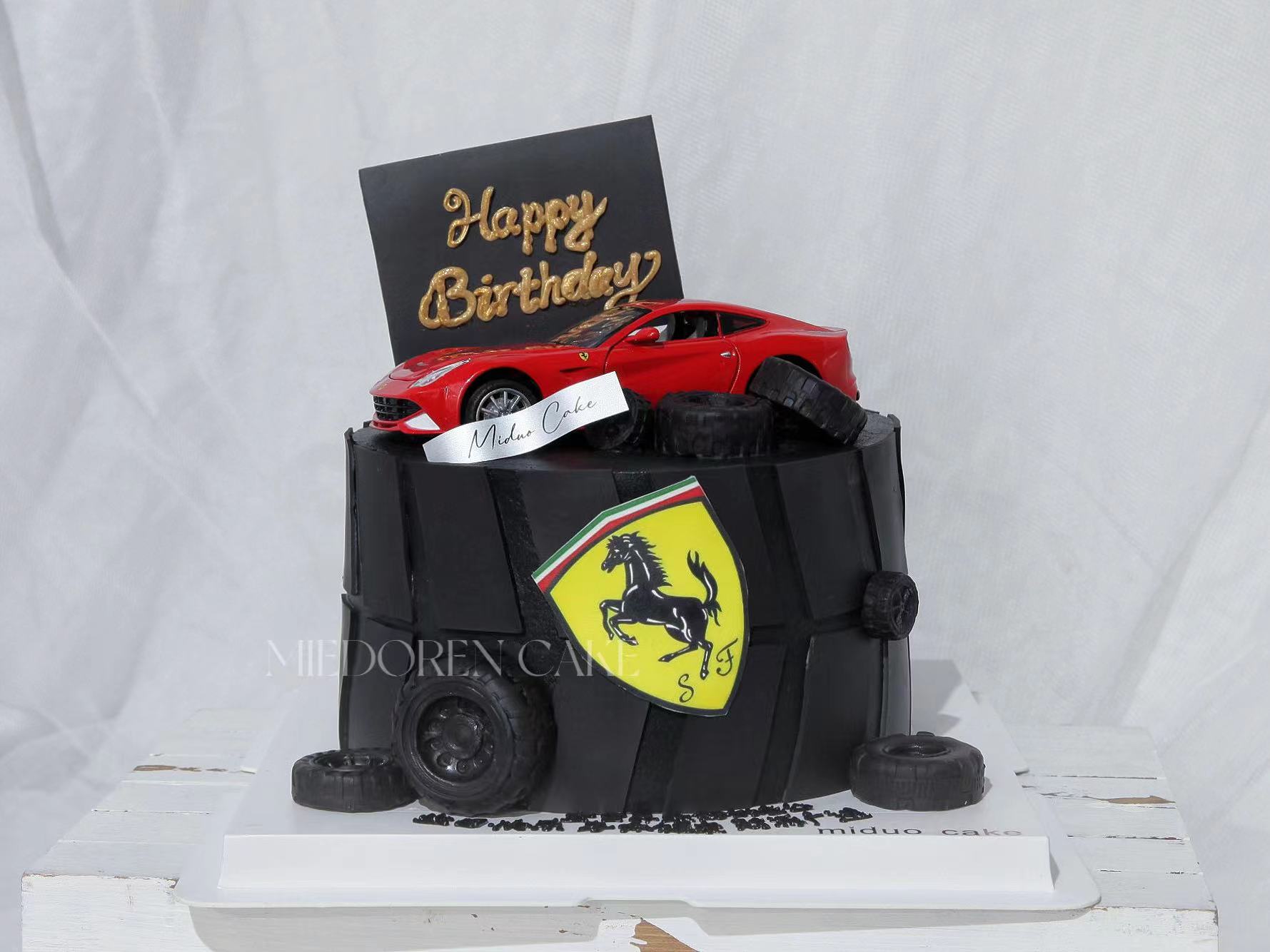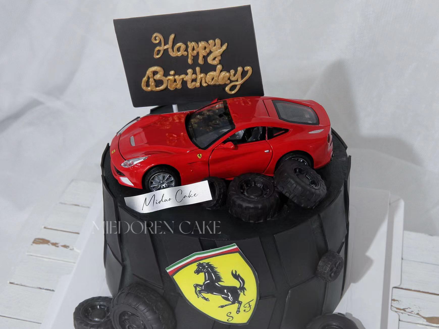 男士款 法拉利跑车 红色跑车 红黑色系 翻糖 奶油蛋糕