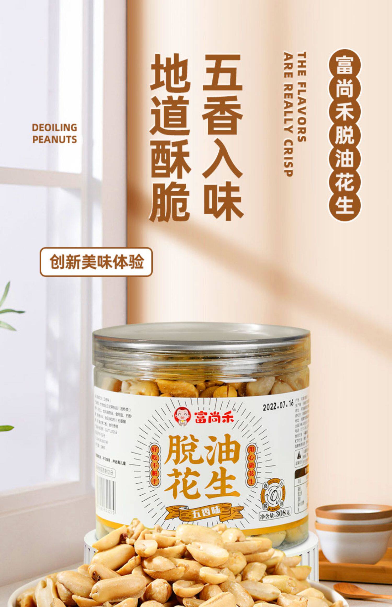 富尚禾脱油花生米香辣花生无油五香熟食去壳零食下酒小菜吃罐装