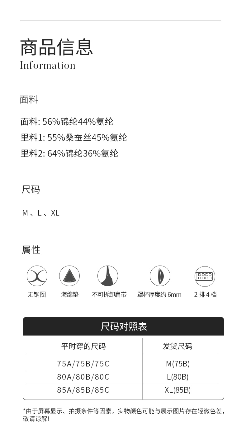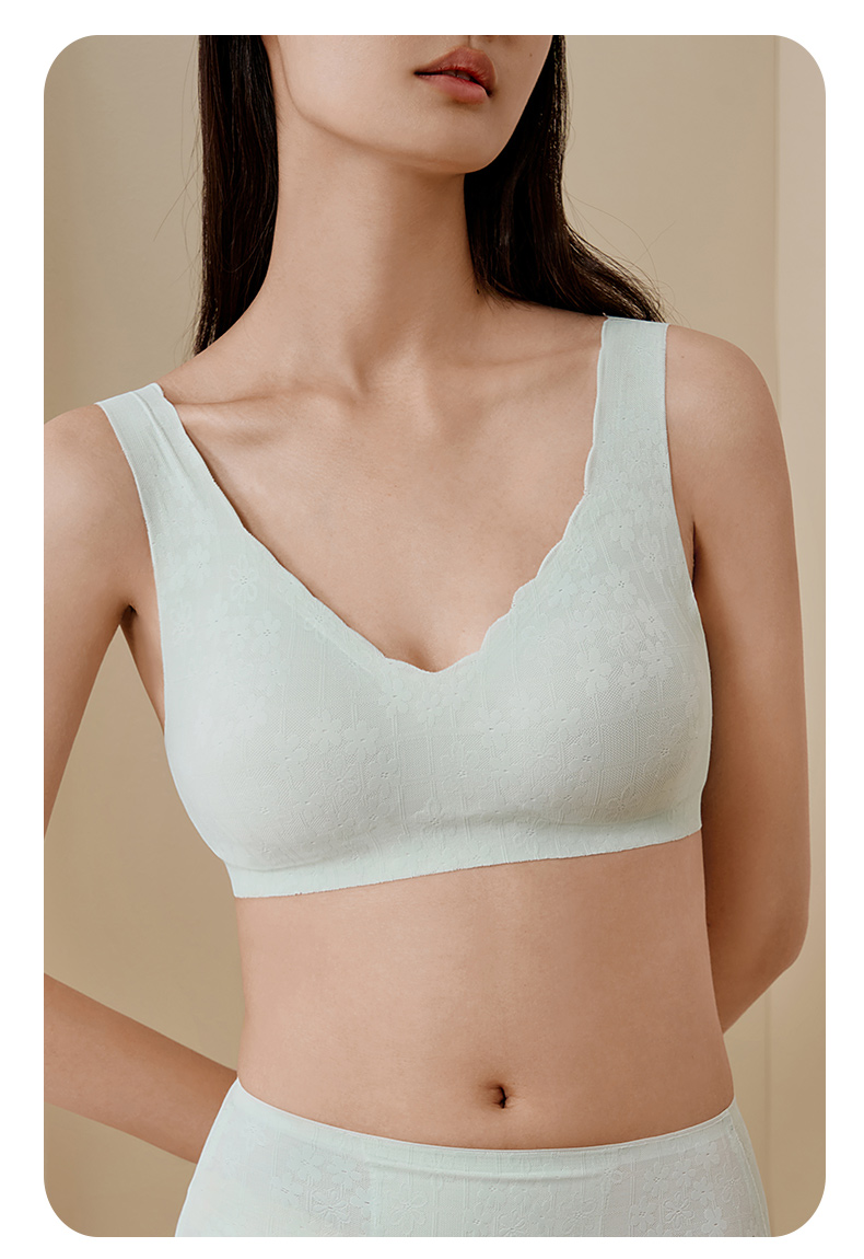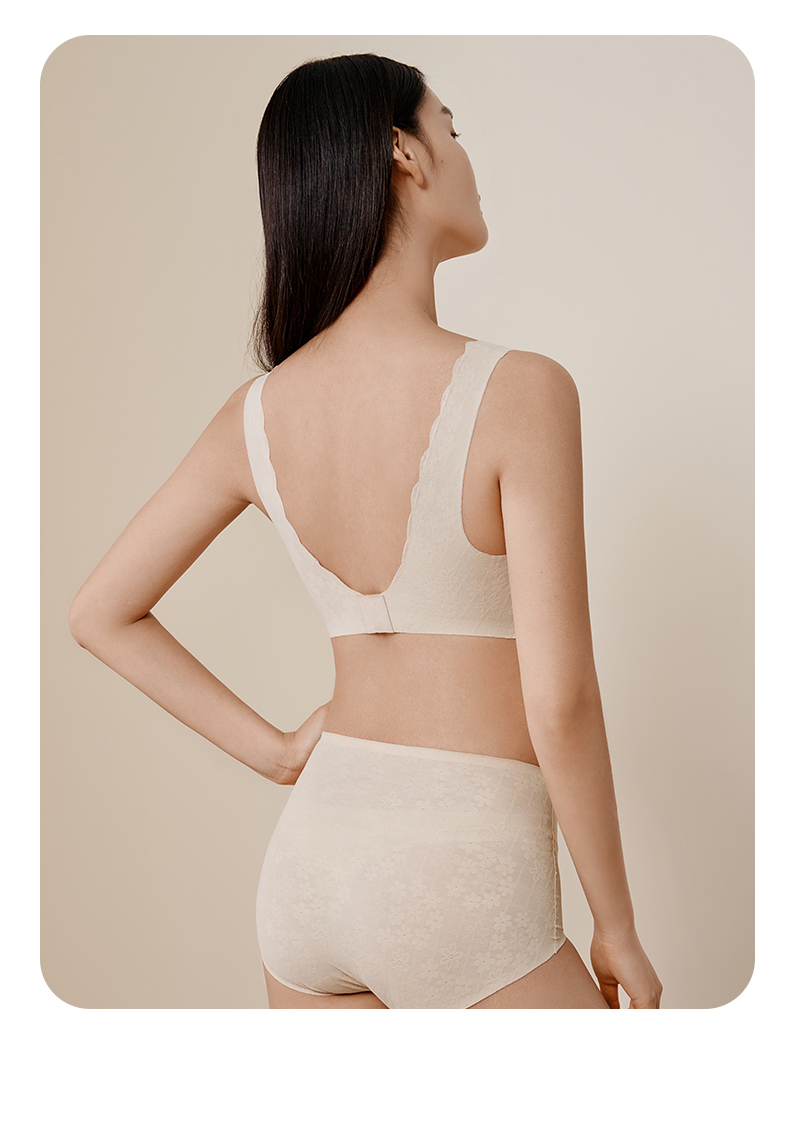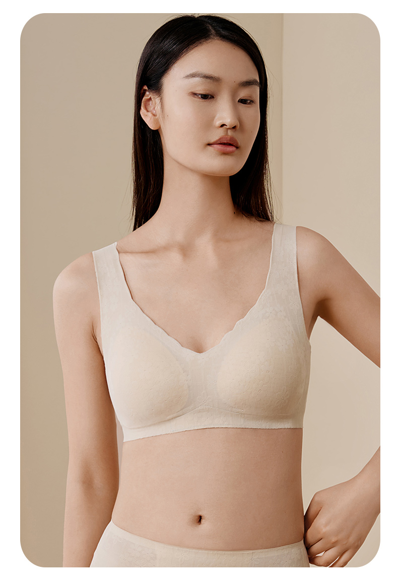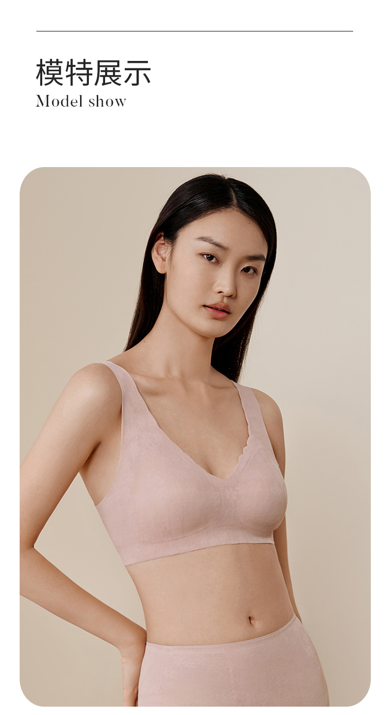 金三塔真丝文胸桑蚕丝轻薄透气背心式无钢圈优雅蕾丝无痕文胸女/文胸内裤套 NZFFC309