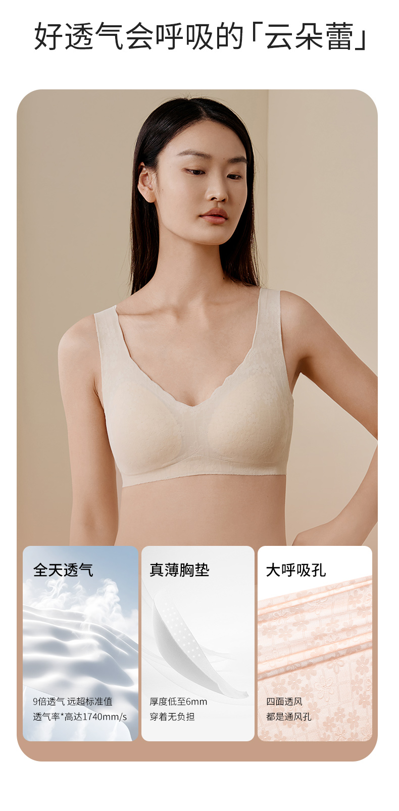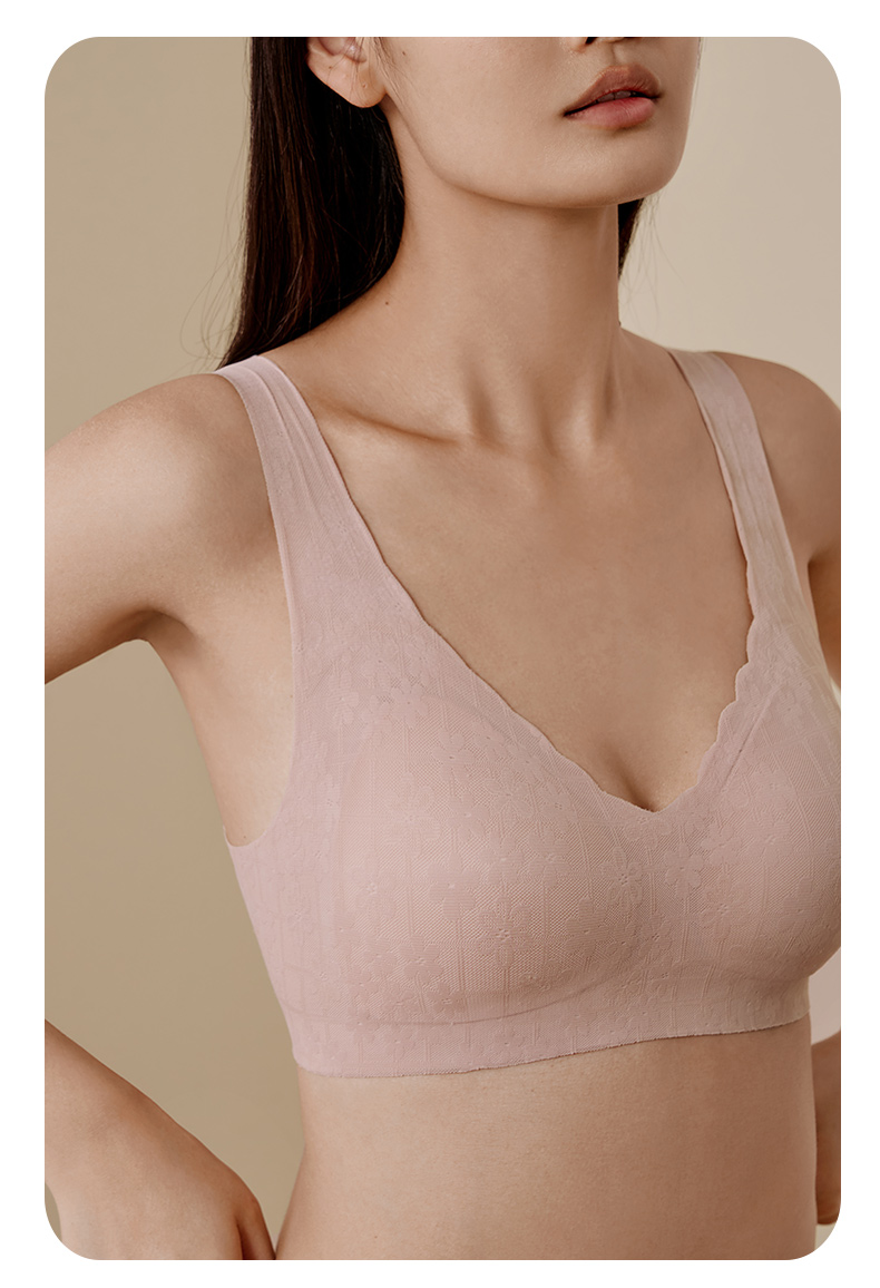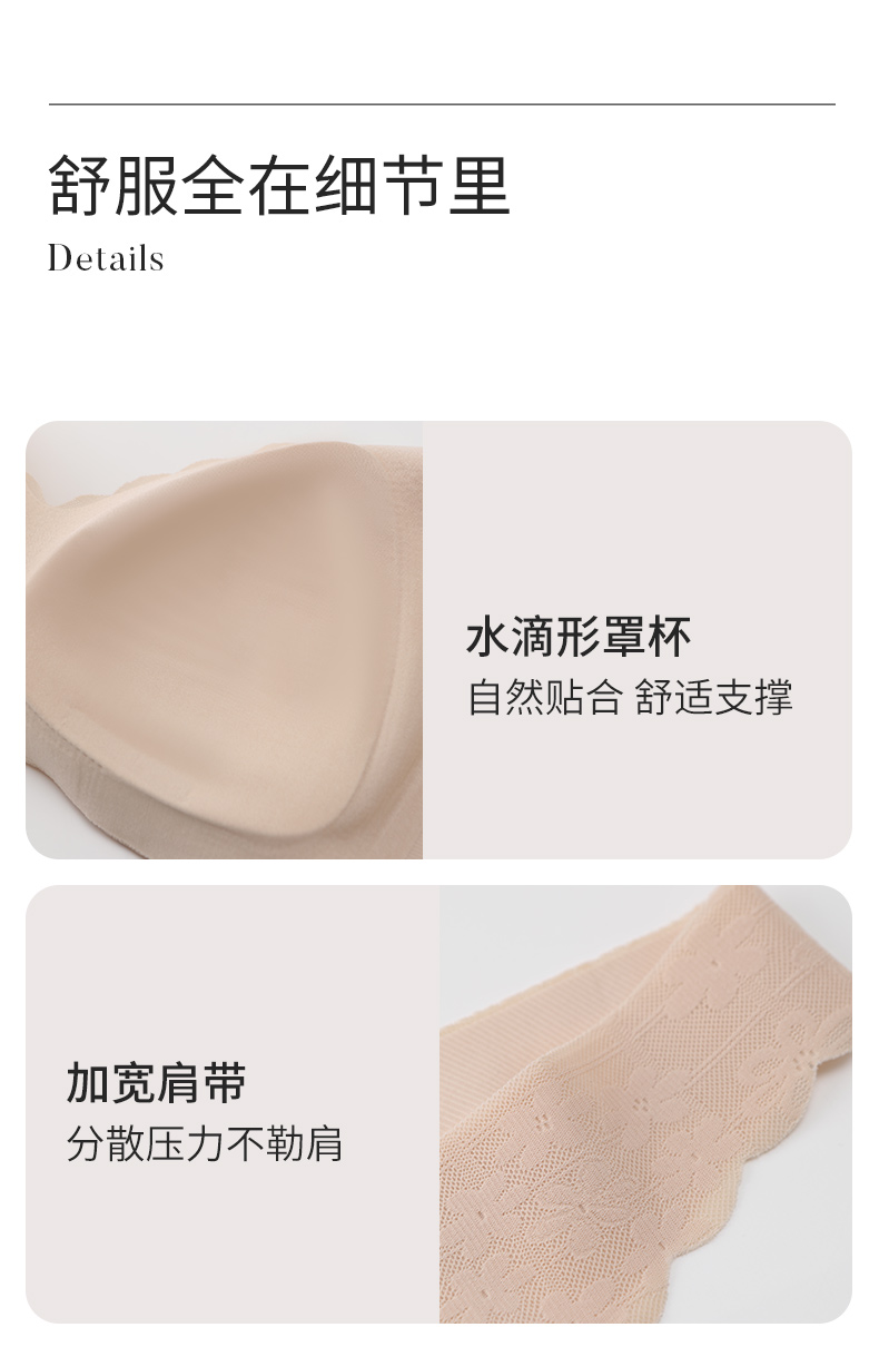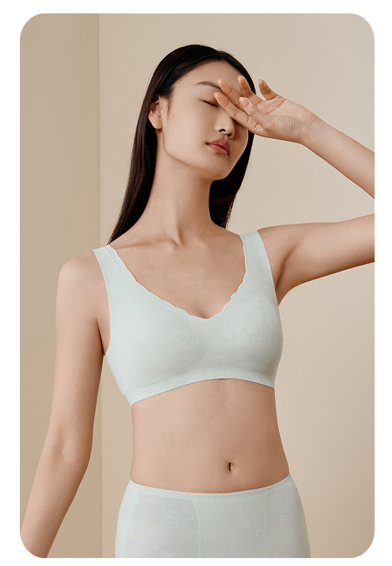 金三塔真丝文胸桑蚕丝轻薄透气背心式无钢圈优雅蕾丝无痕文胸女/文胸内裤套 NZFFC309