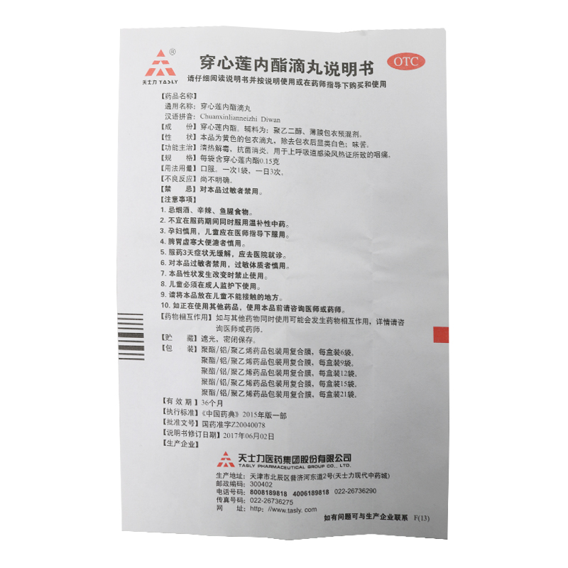 TASLY/天士力穿心莲内酯滴丸6袋 清热解毒 抗菌消炎 上呼吸道感染