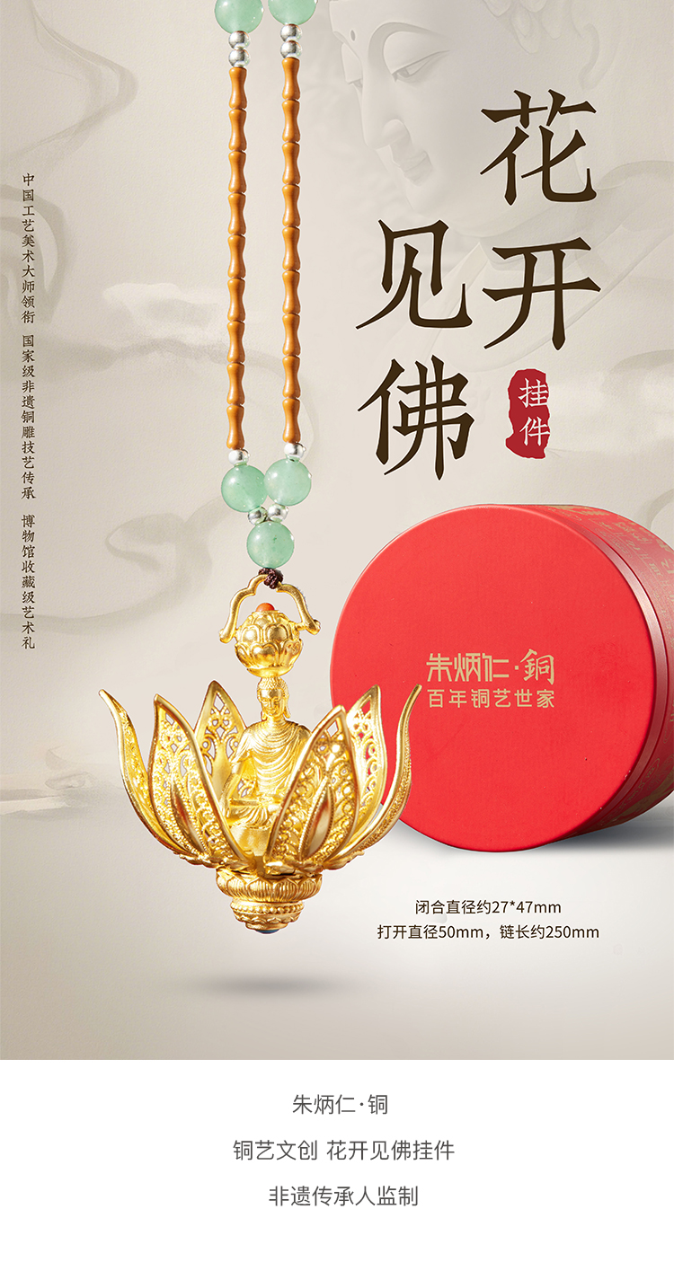 朱炳仁·铜花开见佛挂件,非遗技艺中国人的传家宝,母亲节送礼就选它