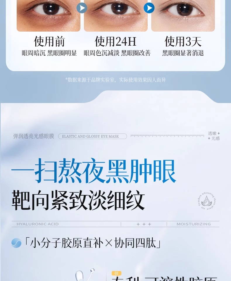 【专攻黑眼圈】弹润透亮光感眼膜#祛眼膜贴淡化黑眼圈细纹抗皱衰老紧致眼袋去除神器皱纹女男士正品