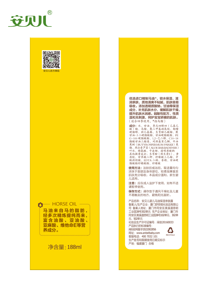 【安贝儿】婴儿马油保湿亲肤露188ml