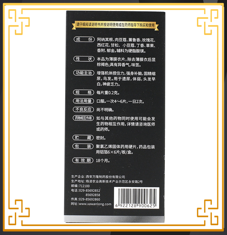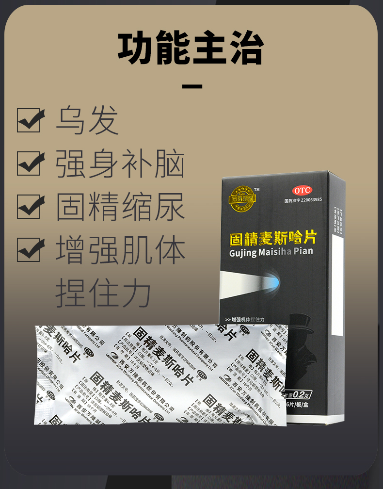 万隆制药固精麦斯哈片36片强身补脑固精缩尿乌发遗尿体弱乏力正品