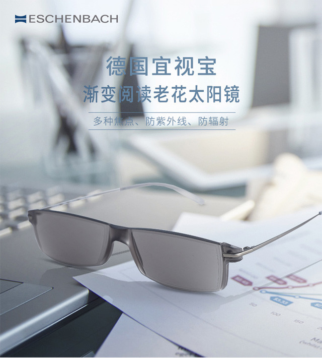 德国ESCHENBACH宜视宝时尚防UV太阳老花镜远近两用2908
