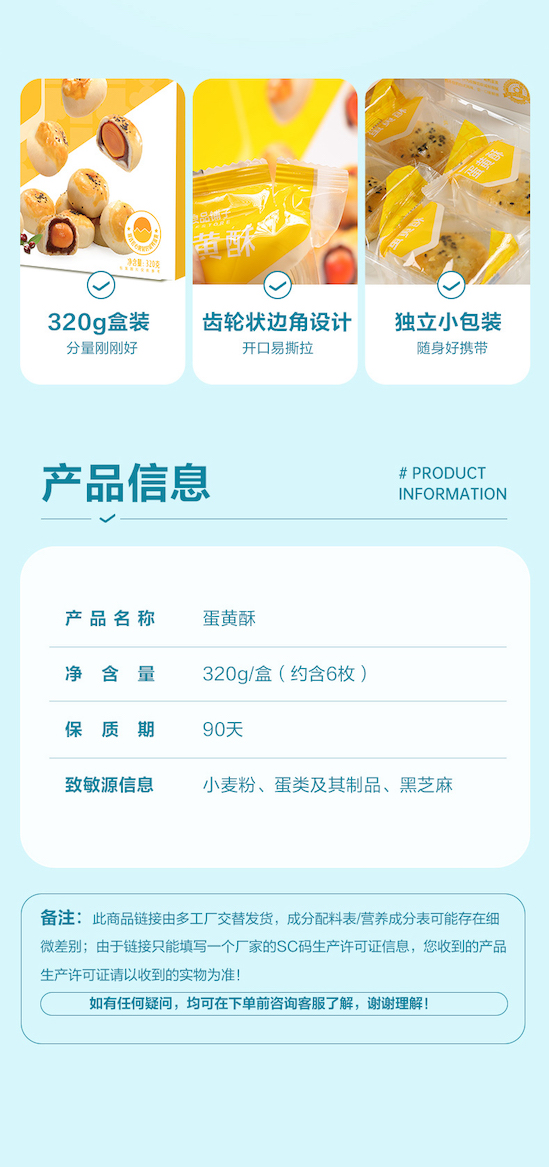 【限时一口价29.9元】蛋黄酥 320gx3盒