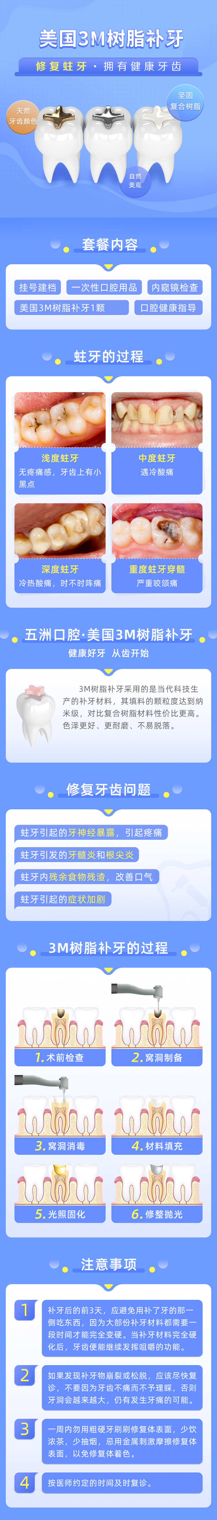 美国3M树脂补牙一颗(含咀嚼功能检查、填充处抛光) 360元