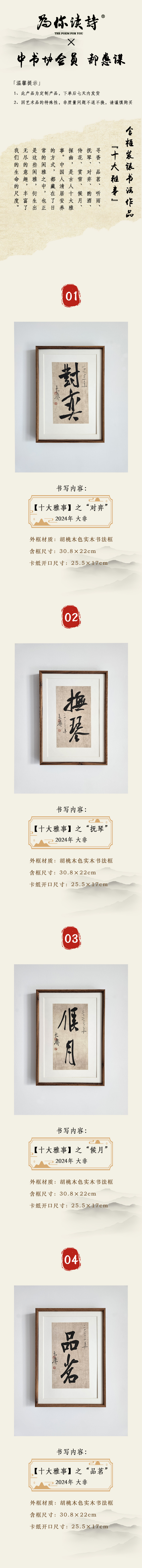中书协会员 郝惠谋 含框装裱书法作品(十大雅事系列)