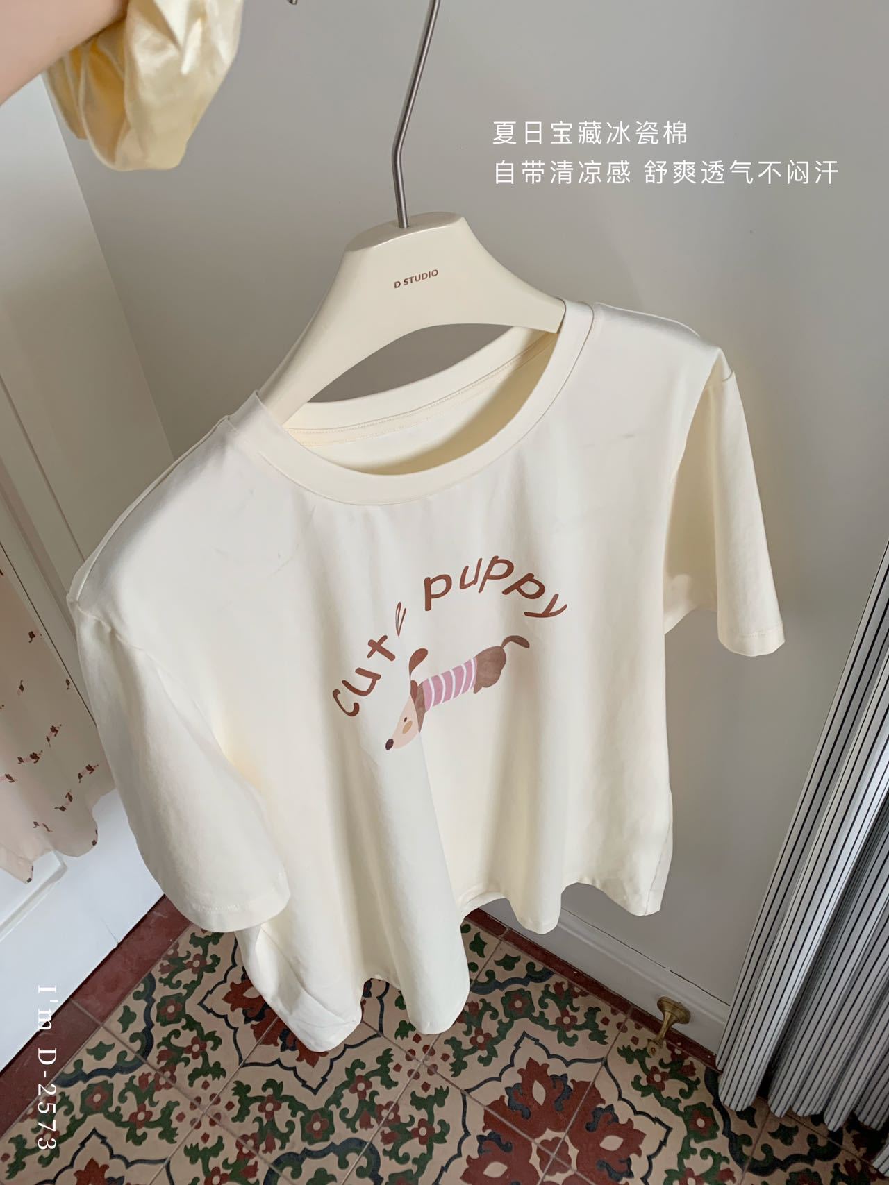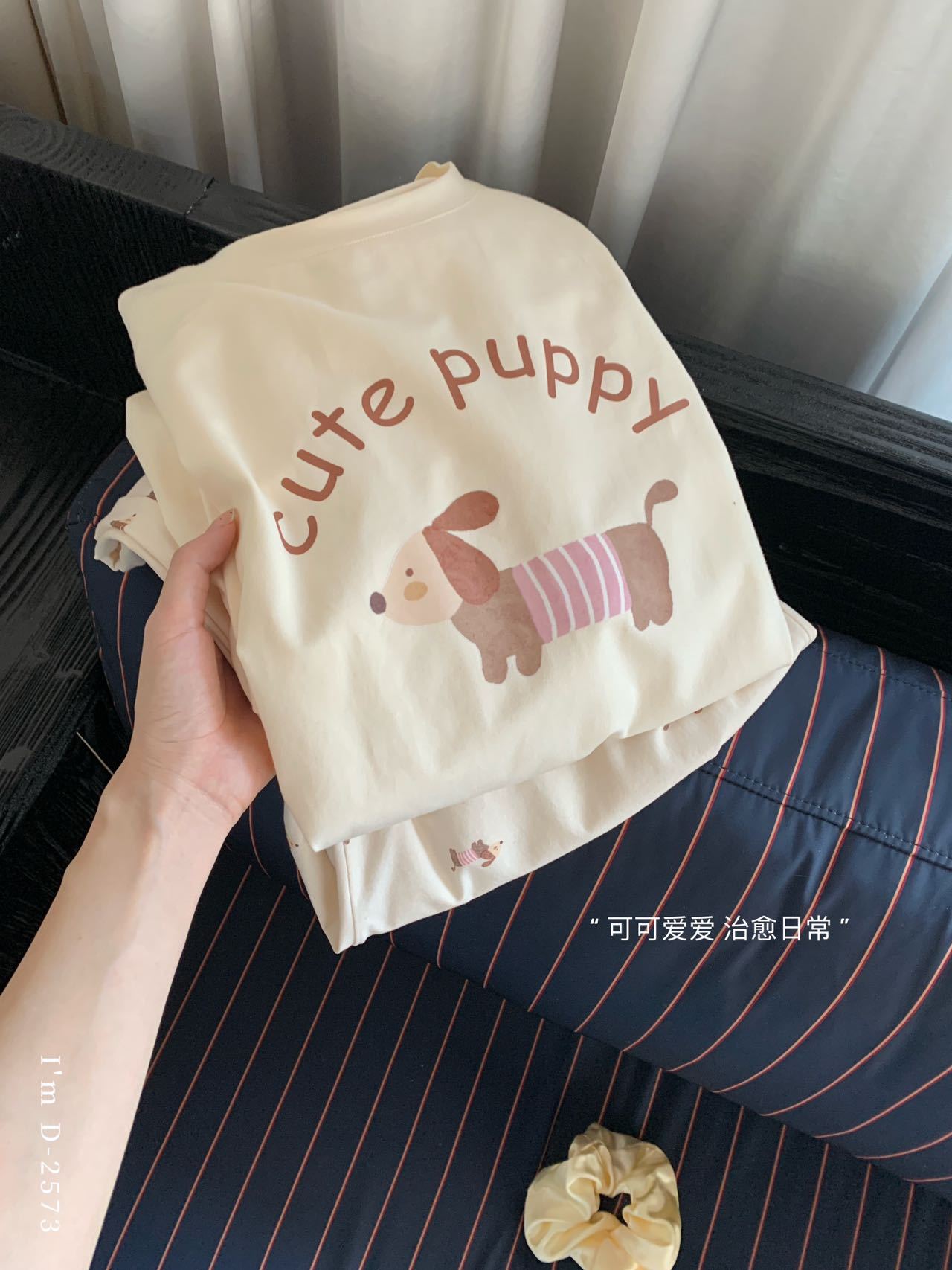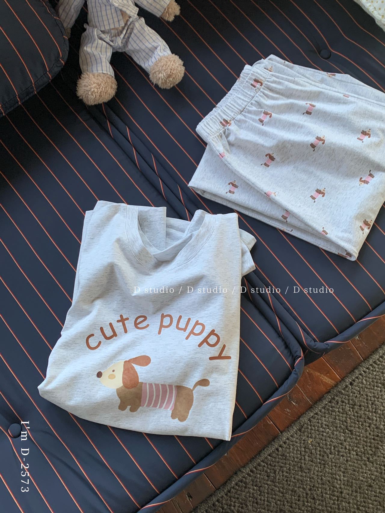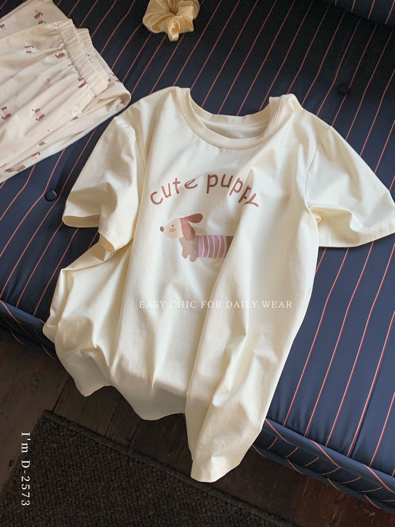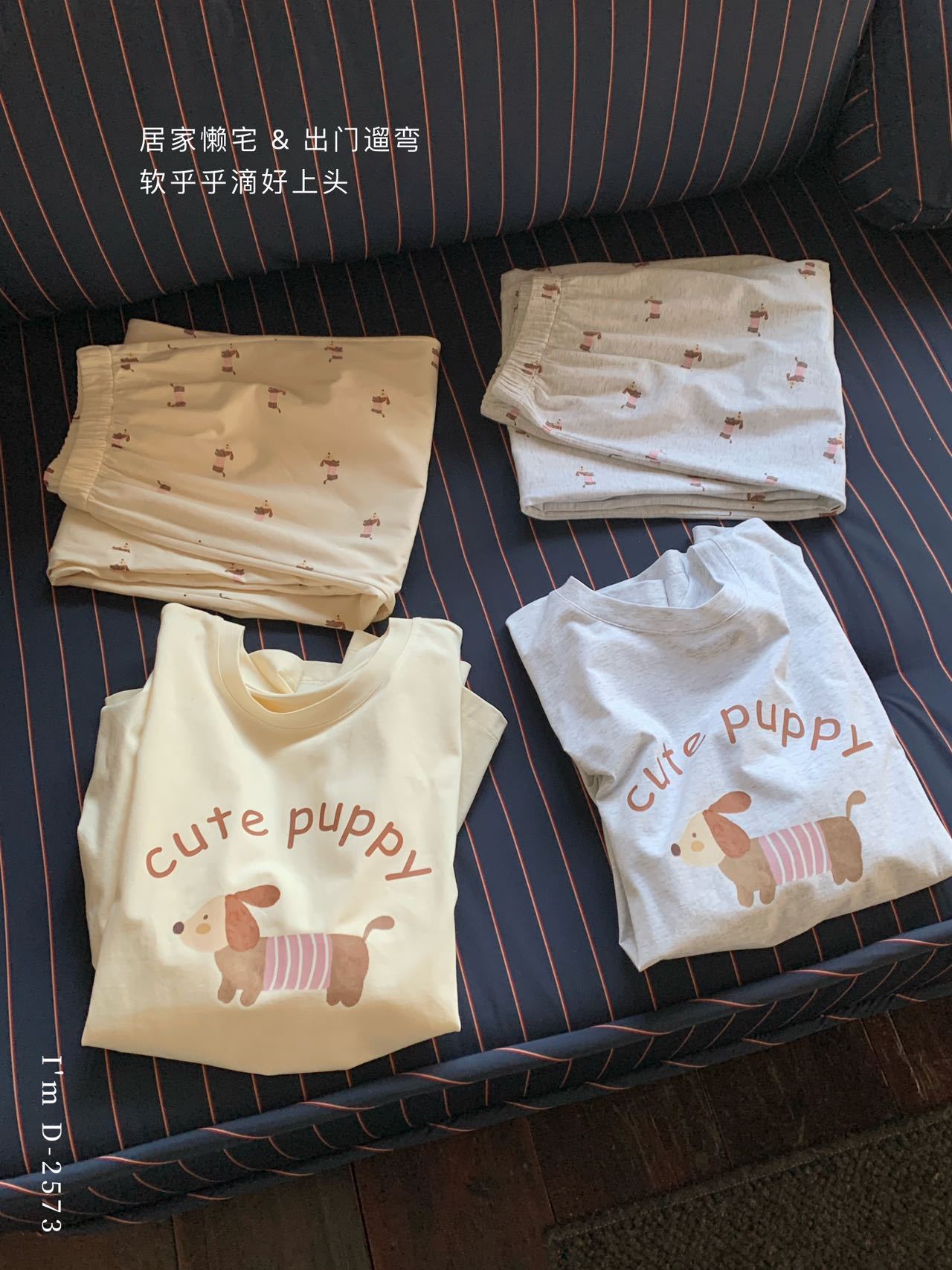 冰丝般细腻滑爽!春夏新款ins腊肠狗印花冰瓷懒宅衣 宽松休闲圆领家居服短袖长裤套装