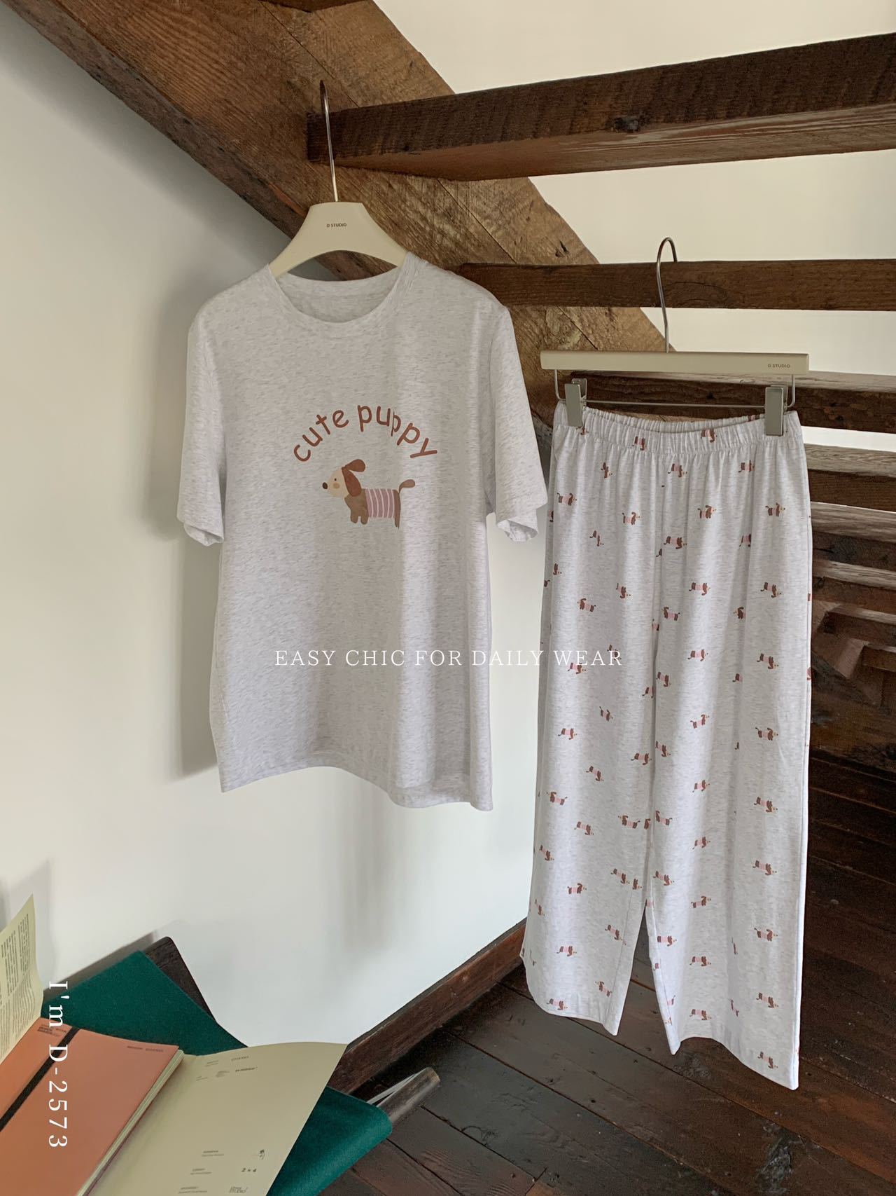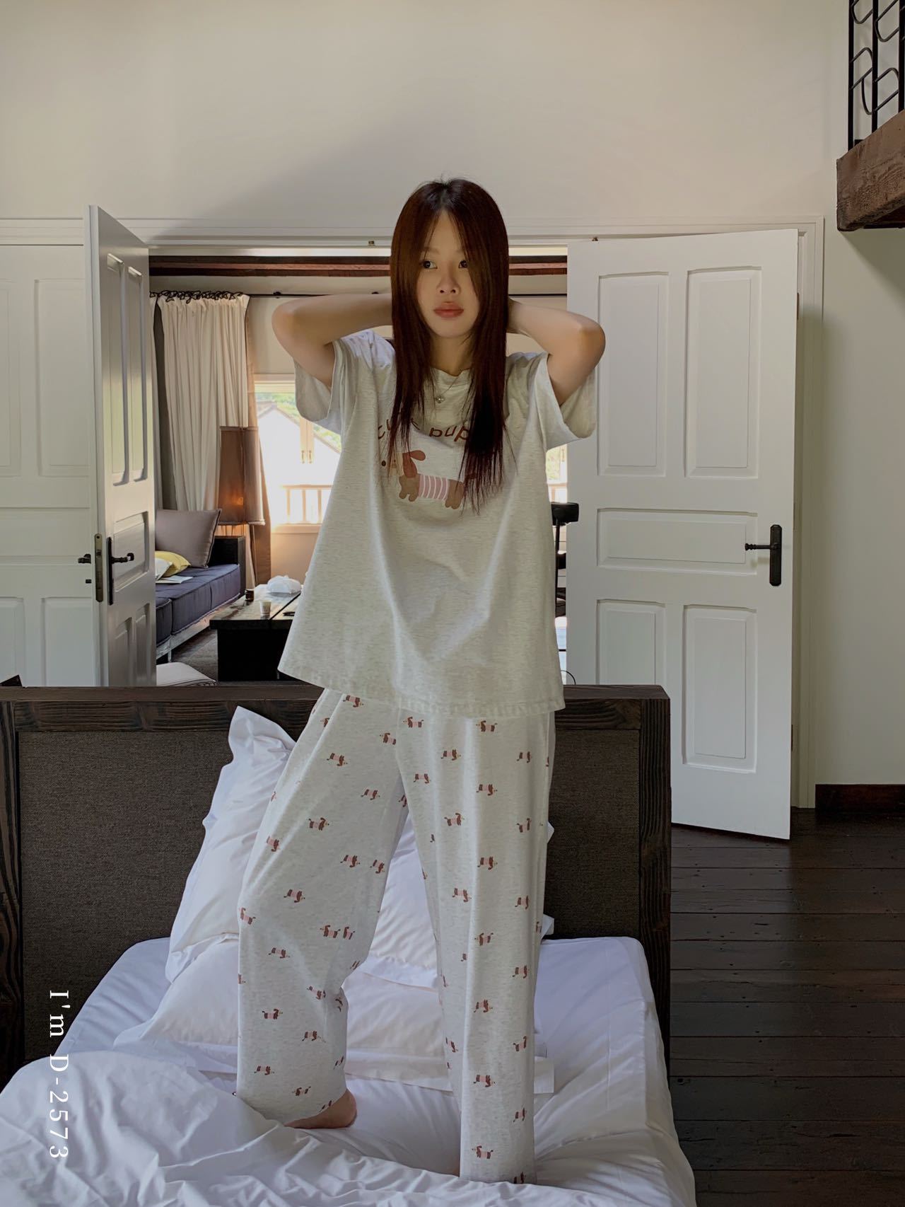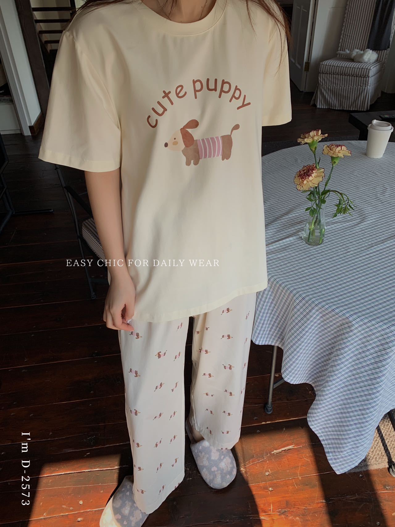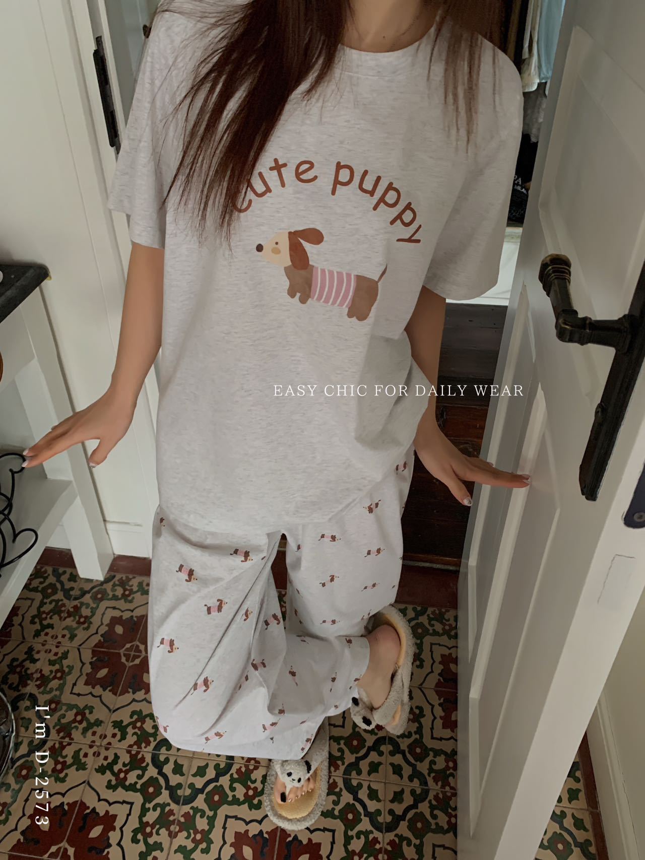 冰丝般细腻滑爽!春夏新款ins腊肠狗印花冰瓷懒宅衣 宽松休闲圆领家居服短袖长裤套装