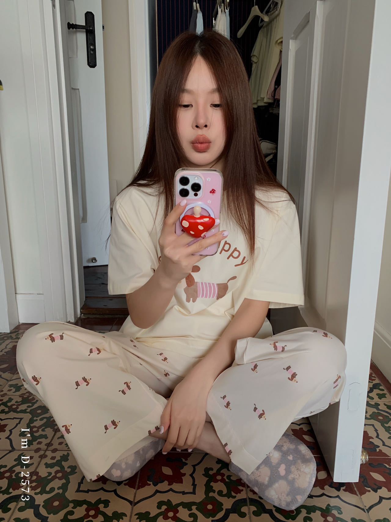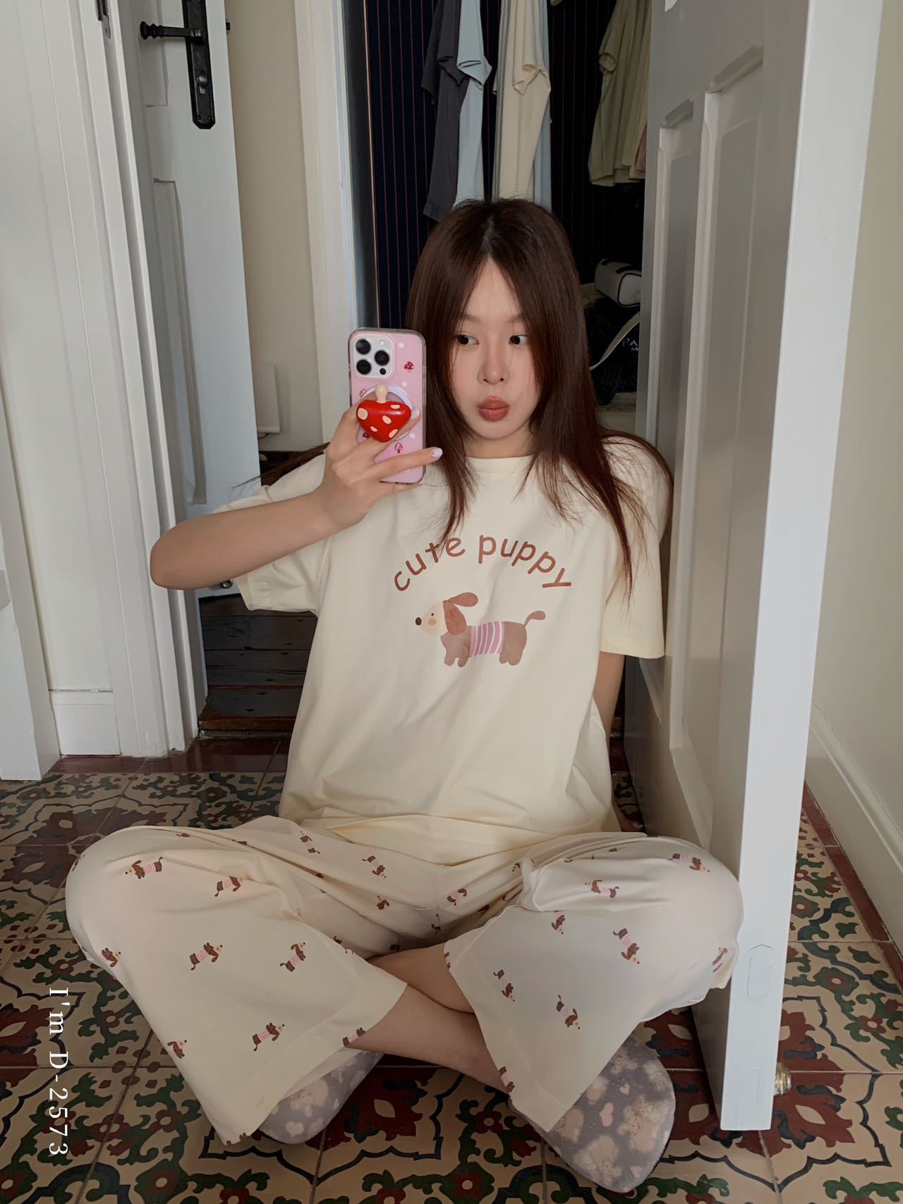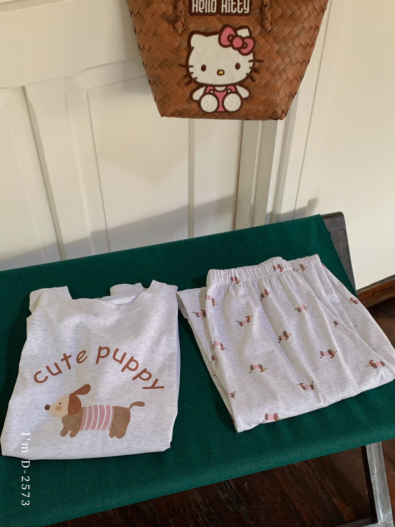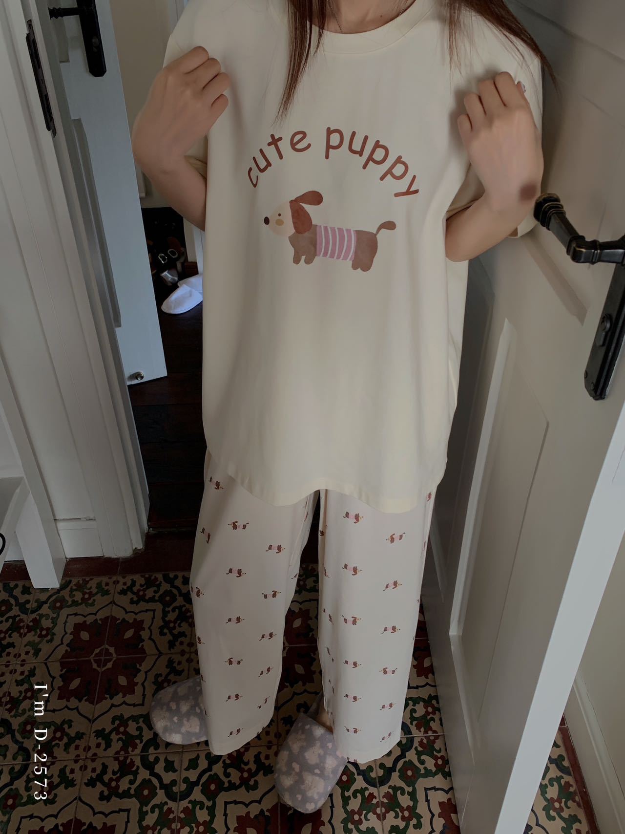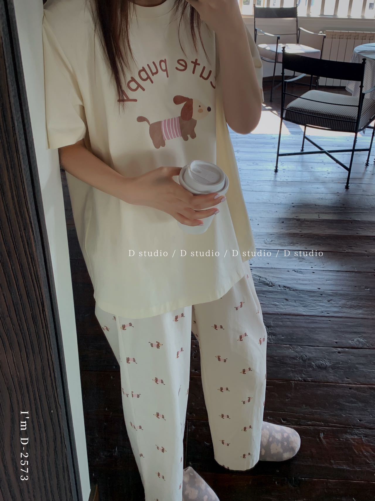 冰丝般细腻滑爽!春夏新款ins腊肠狗印花冰瓷懒宅衣 宽松休闲圆领家居服短袖长裤套装