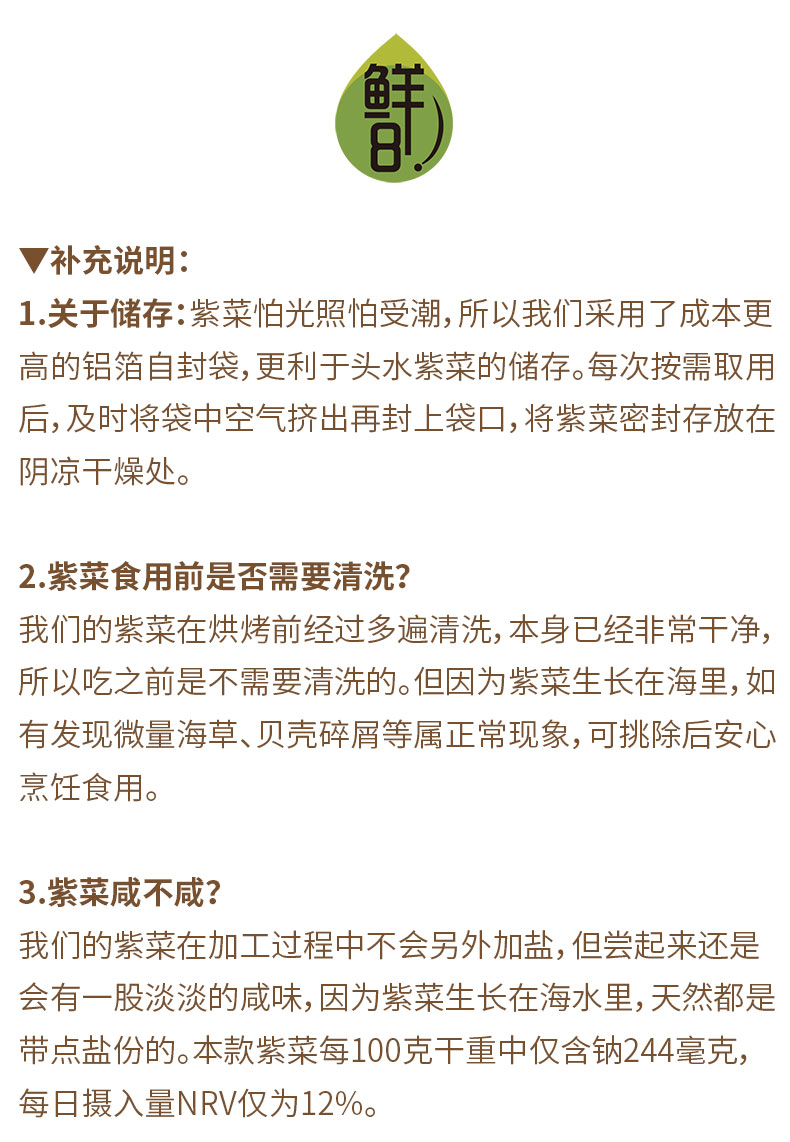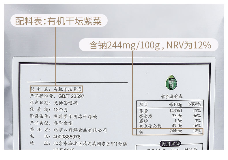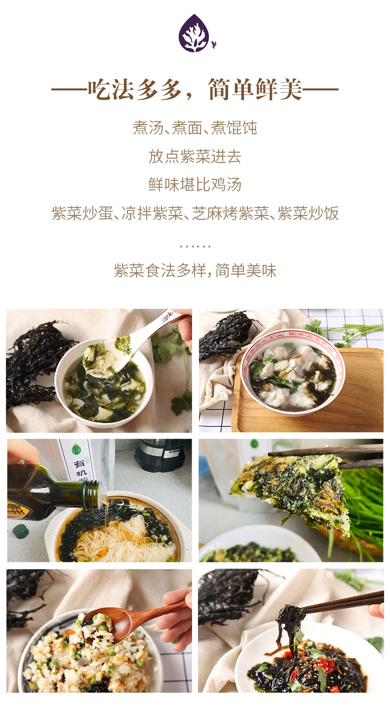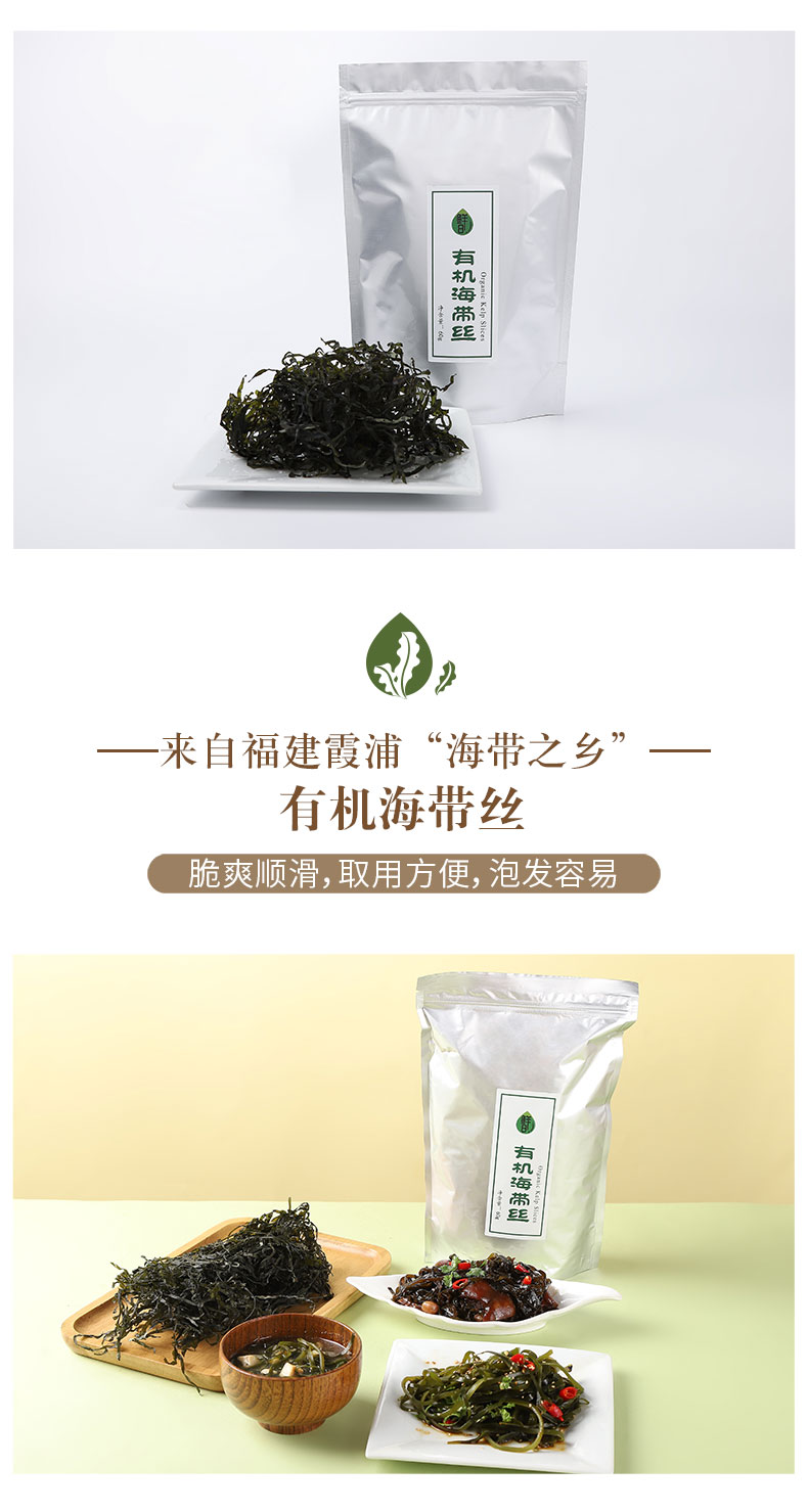 鲜8有机紫菜/有机海带丝60g*2袋装,头水紫菜,细嫩鲜香