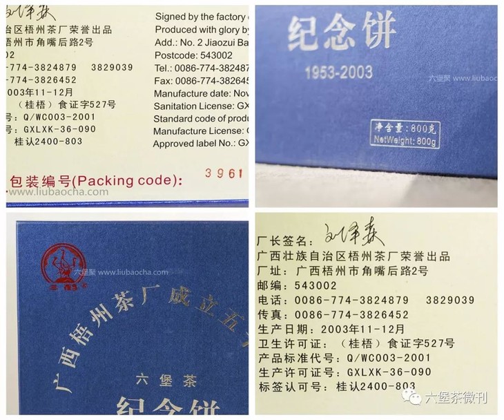 本品为纪念梧州茶厂五十周年(1953~2003)专门设计生产。