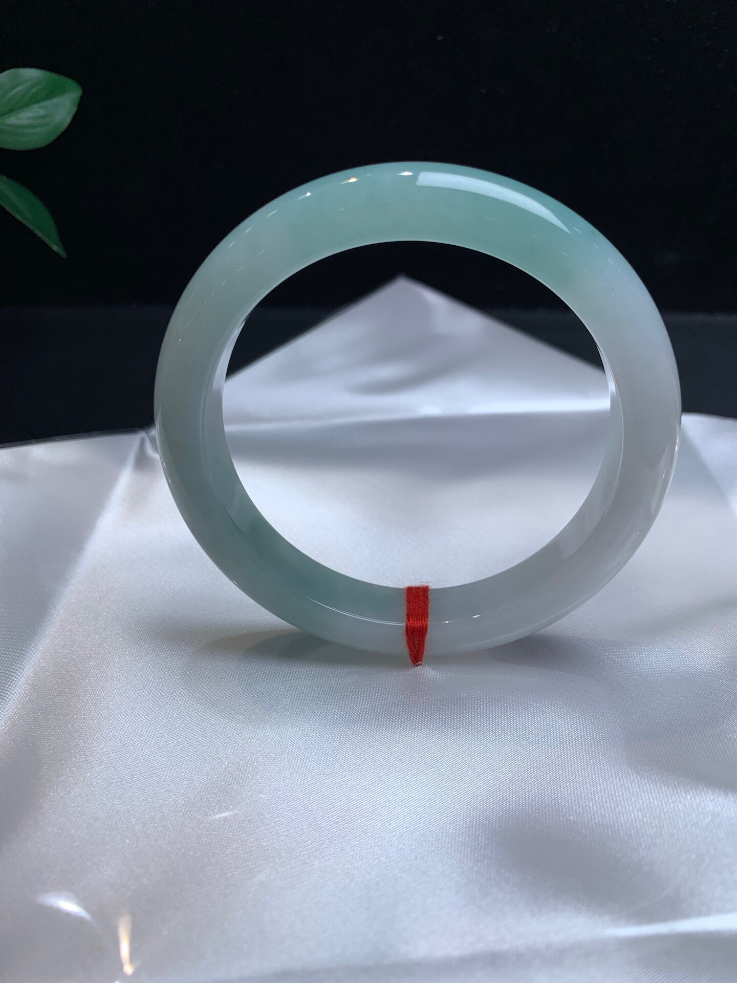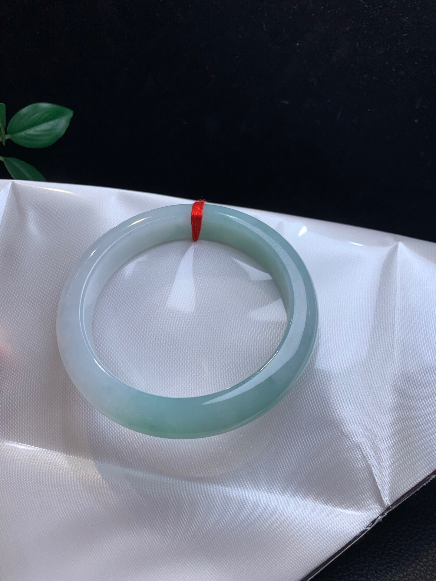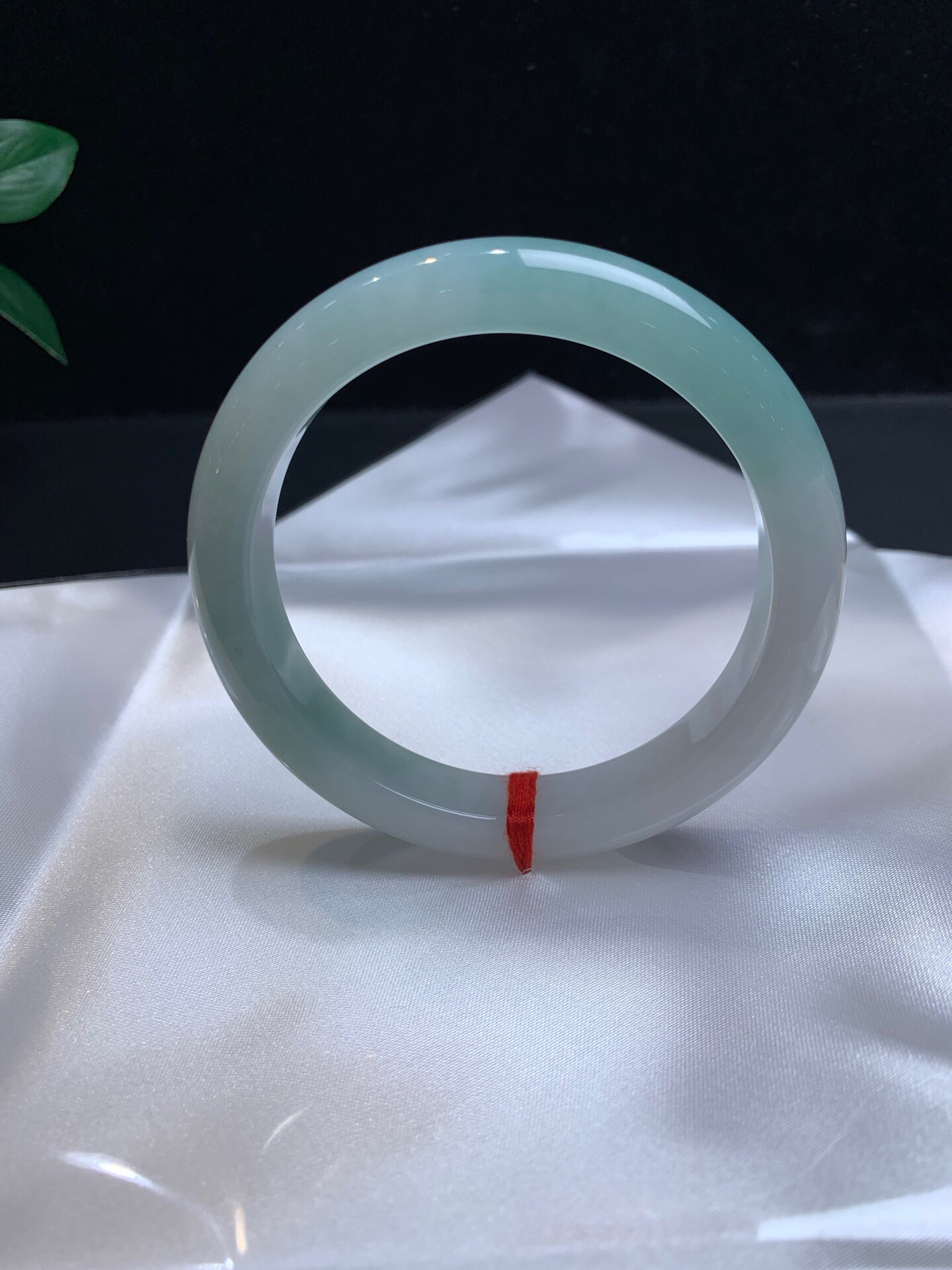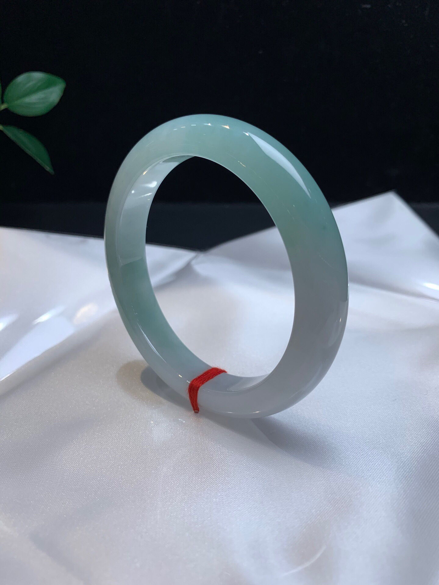 620177,61天空蓝正圈手镯,很清新秀气,一大段带蓝底色