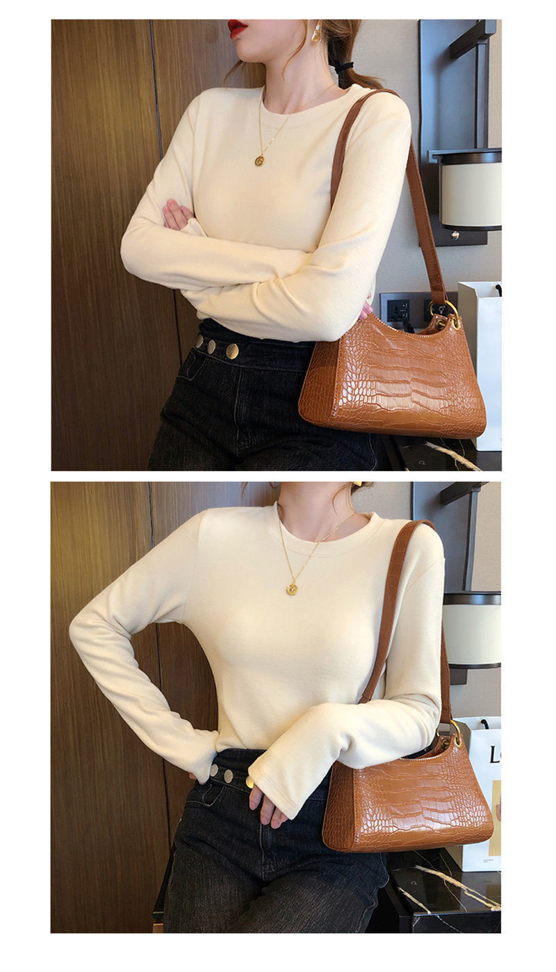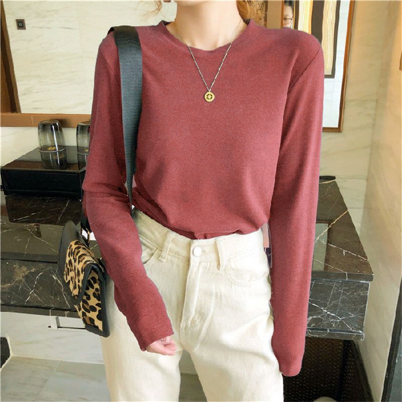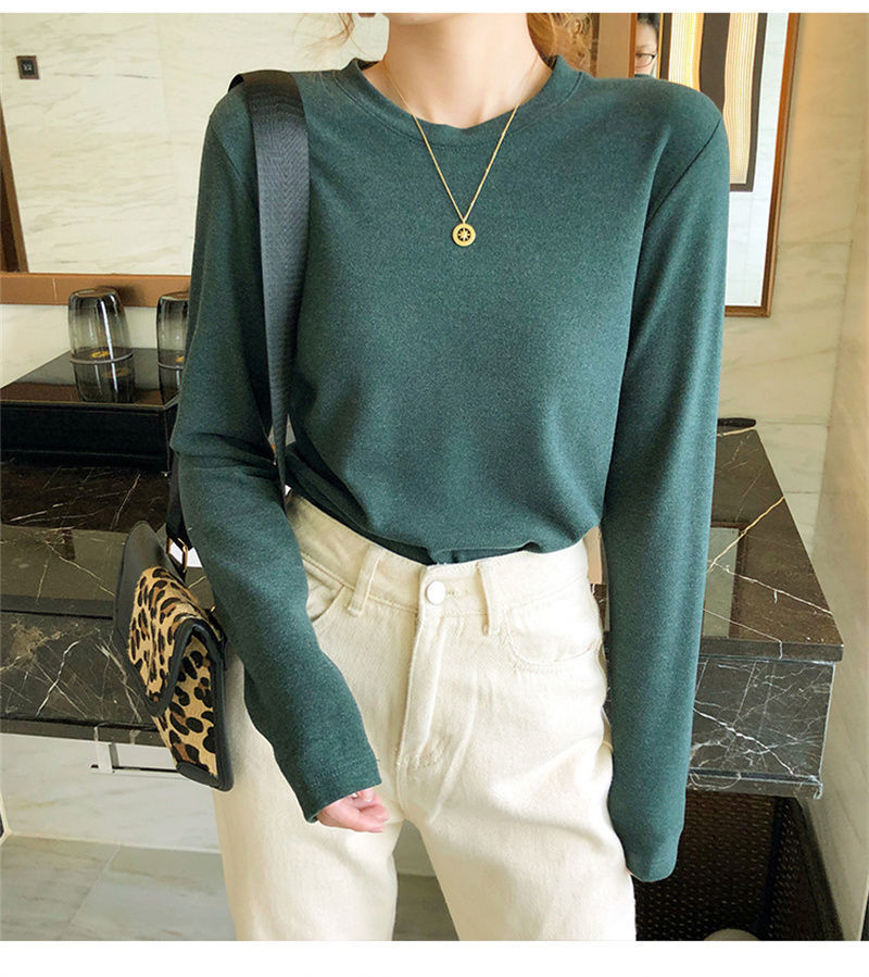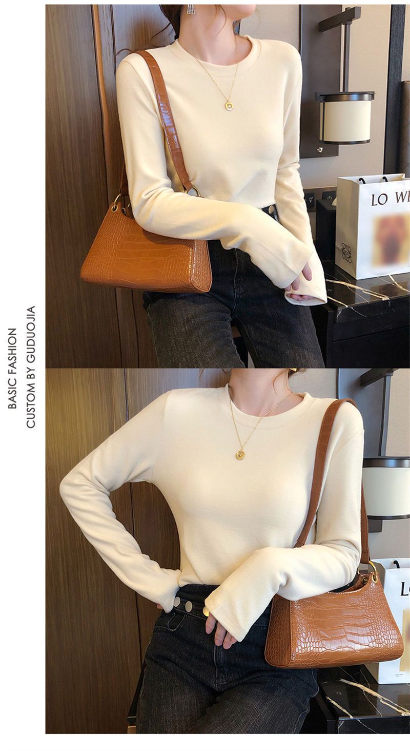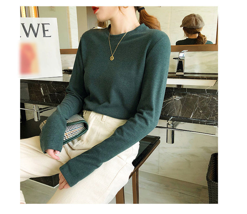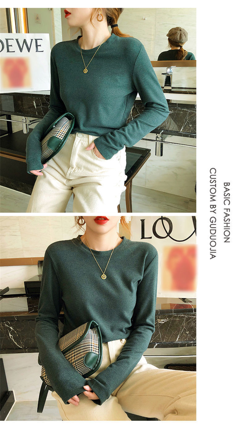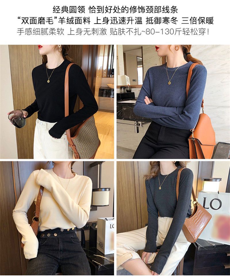 【舒适保暖!德绒加厚打底衫】德绒面料亲肤保暖,手感细腻柔软,上身无刺激,亲肤不扎80-130斤轻松穿!圆领德绒加厚打底衫,长袖t恤女潮