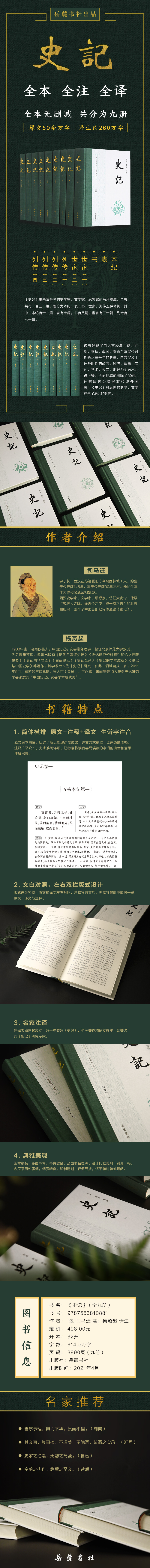 【中读专用】《史记》全本 全注 全译 全9册 精装版