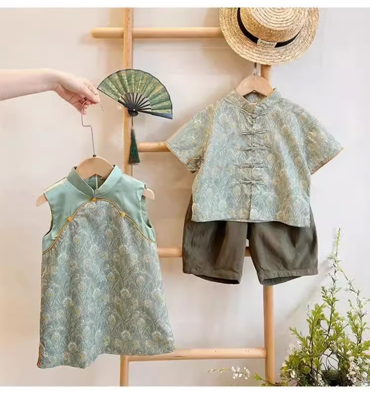 裁缝学苑TQ115新中式短袖衫纸样古风无袖裙男女童盘扣儿童旗袍打板