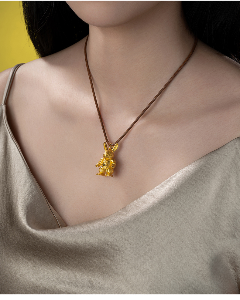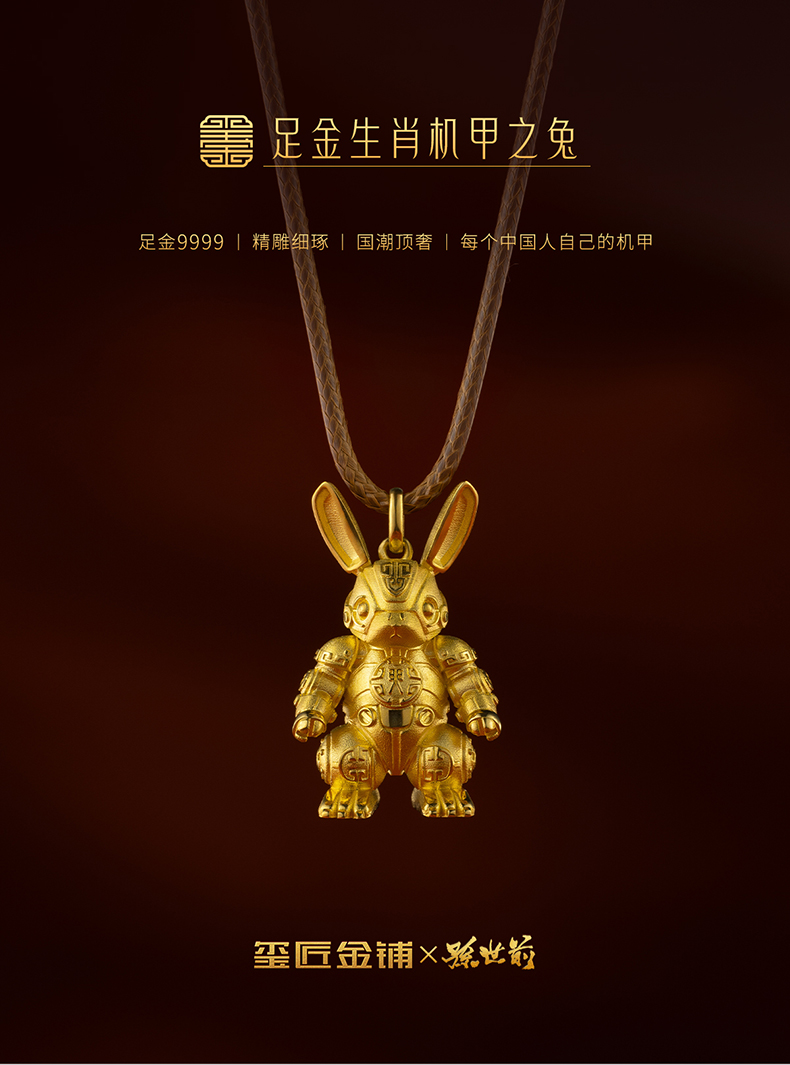 玺匠金铺《足金生肖机甲之兔》足金9999 吊坠项链生日礼物