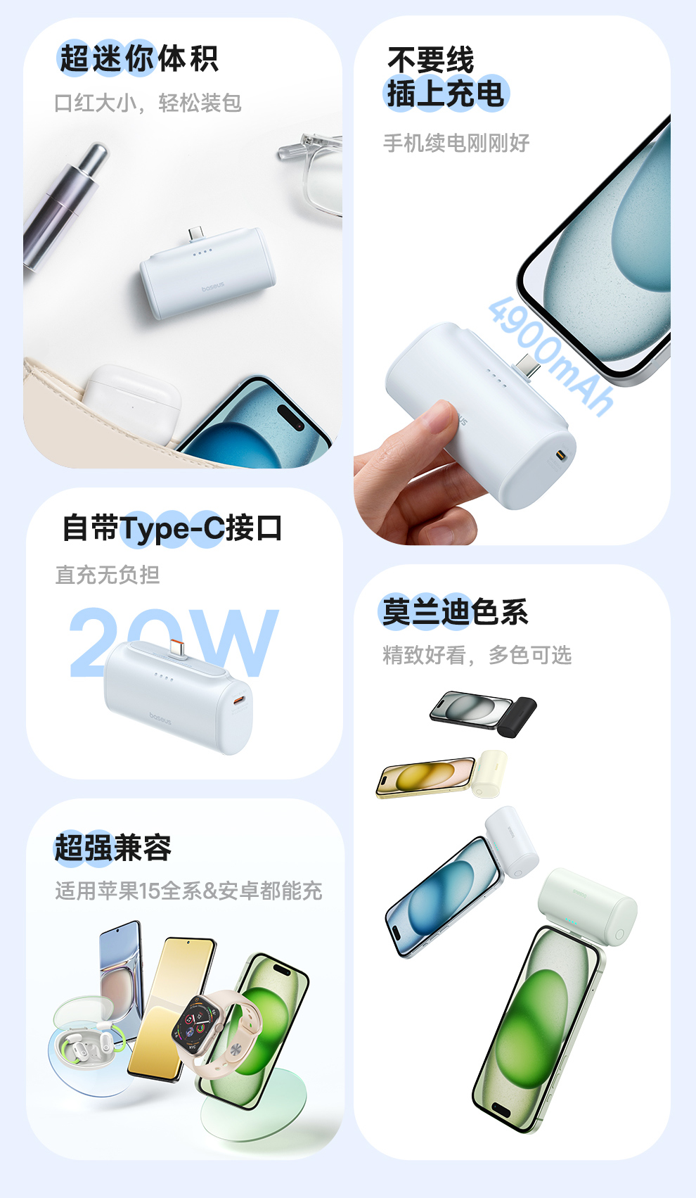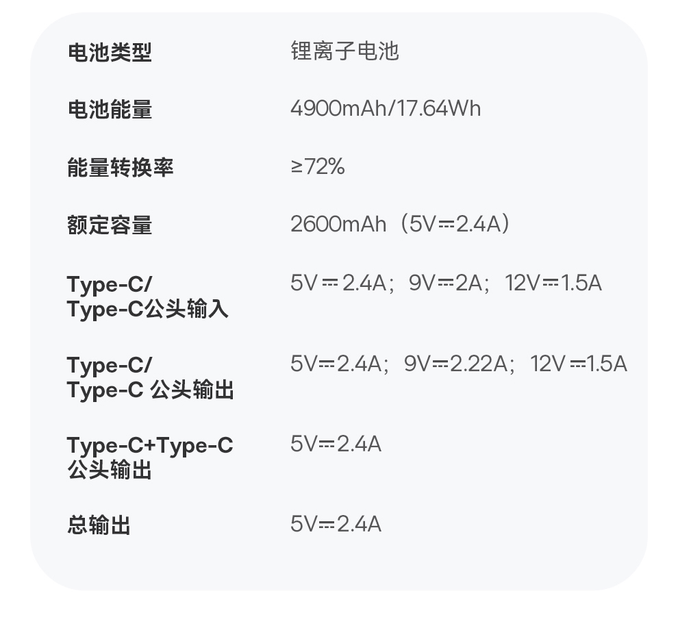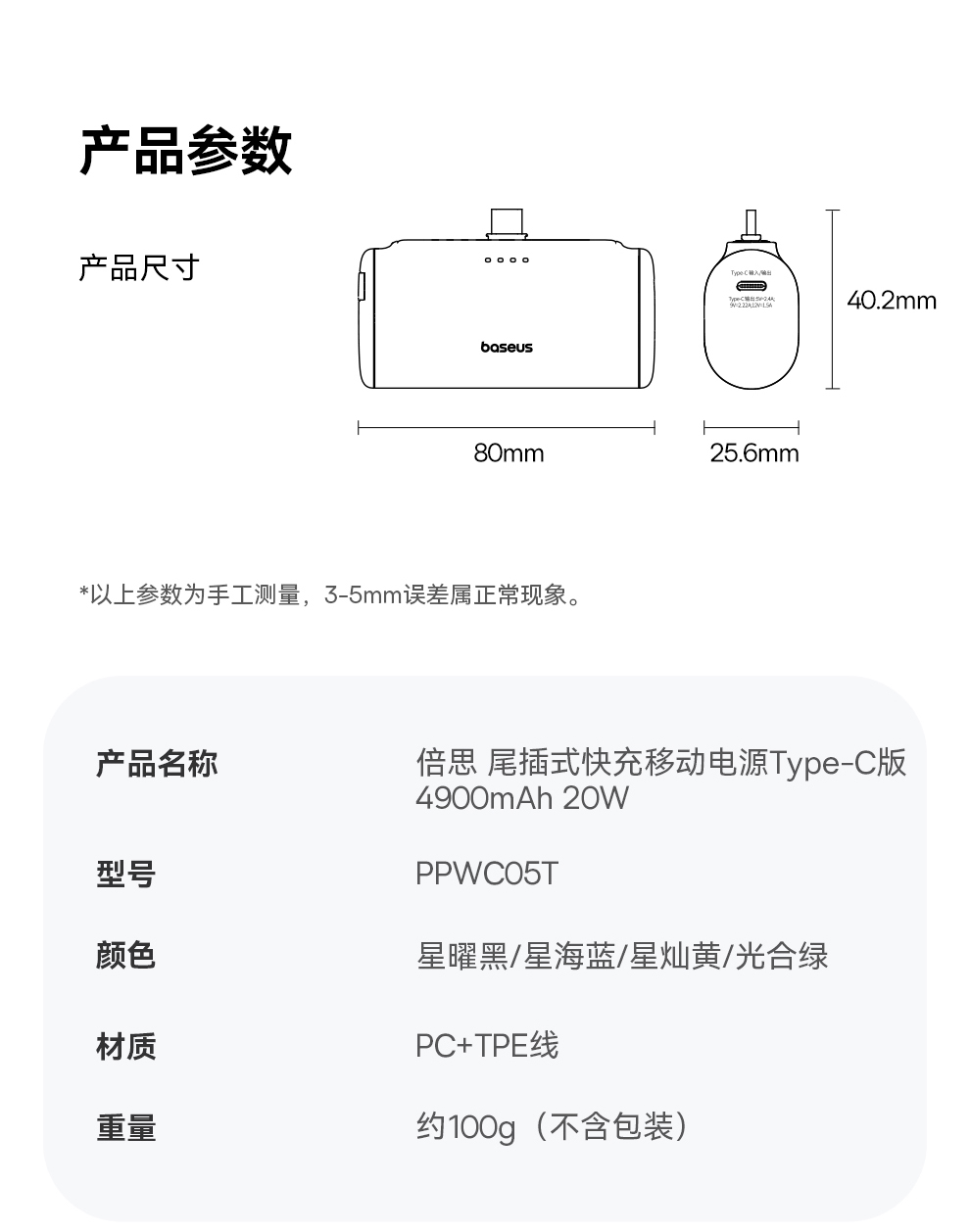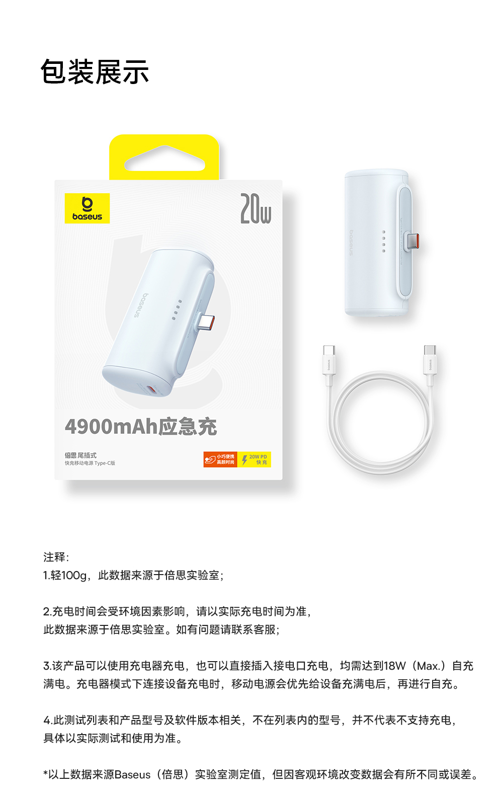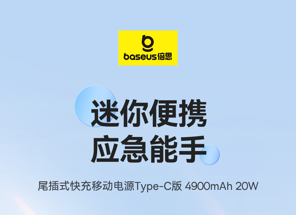 倍思 尾插式 快充移动电源 Type-C版 4900mAh 20W