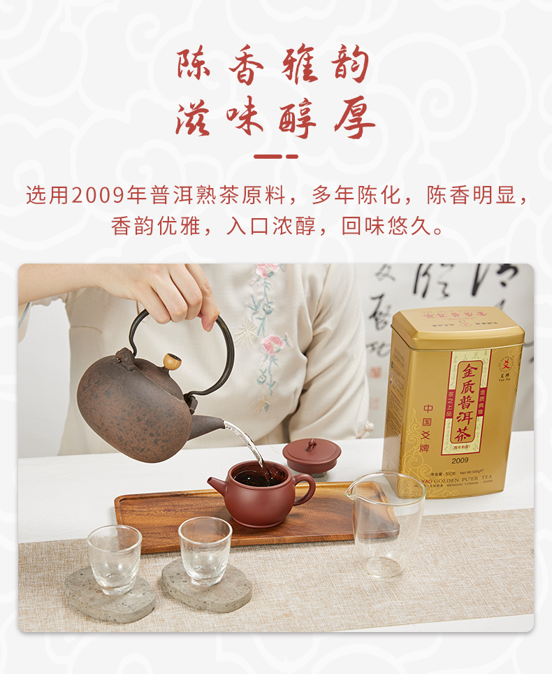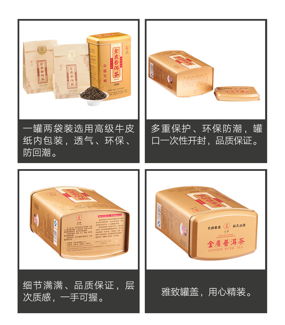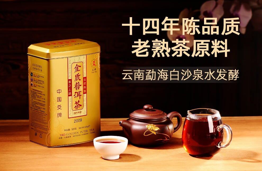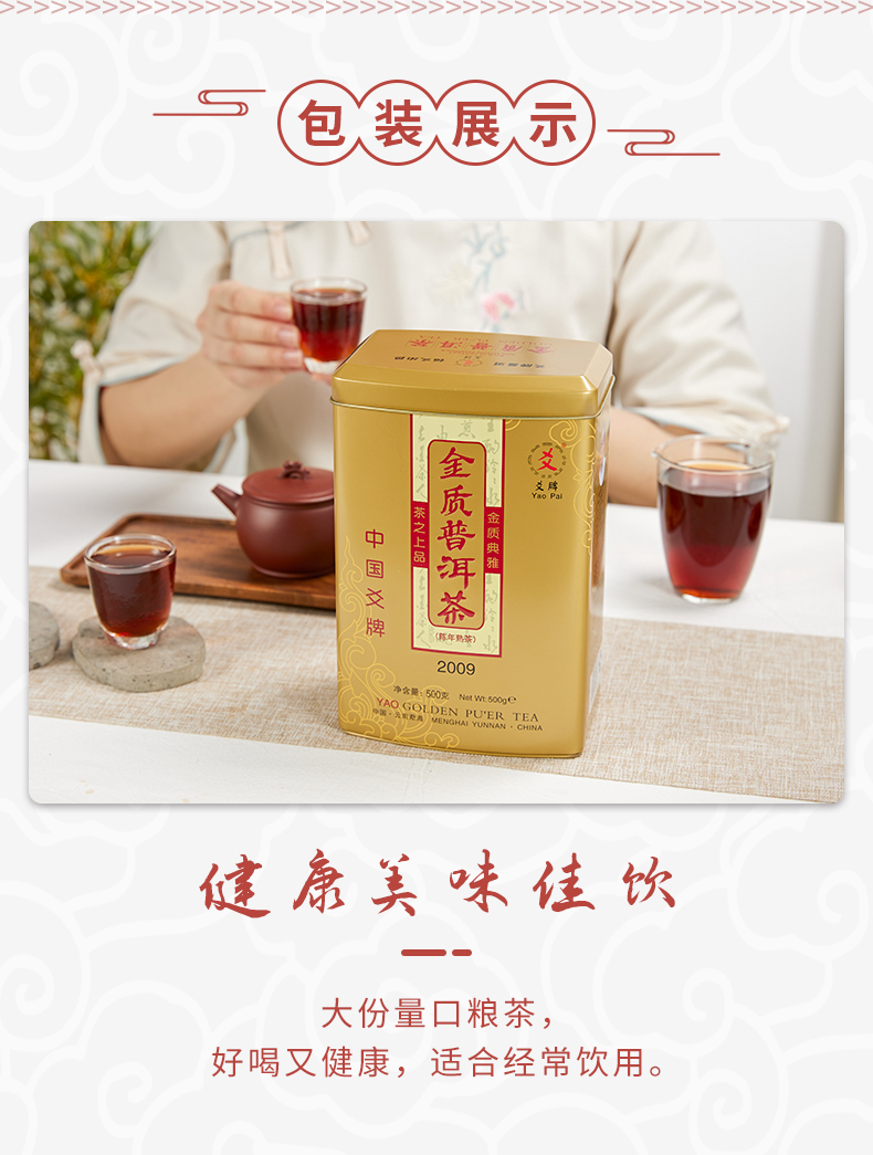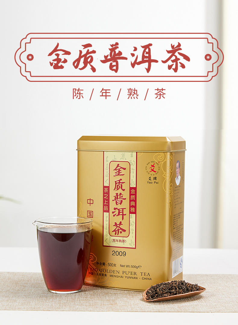 爻牌丨金质普洱茶 普洱熟茶 熟普散茶 2009年原料 500g 买2罐配手提袋