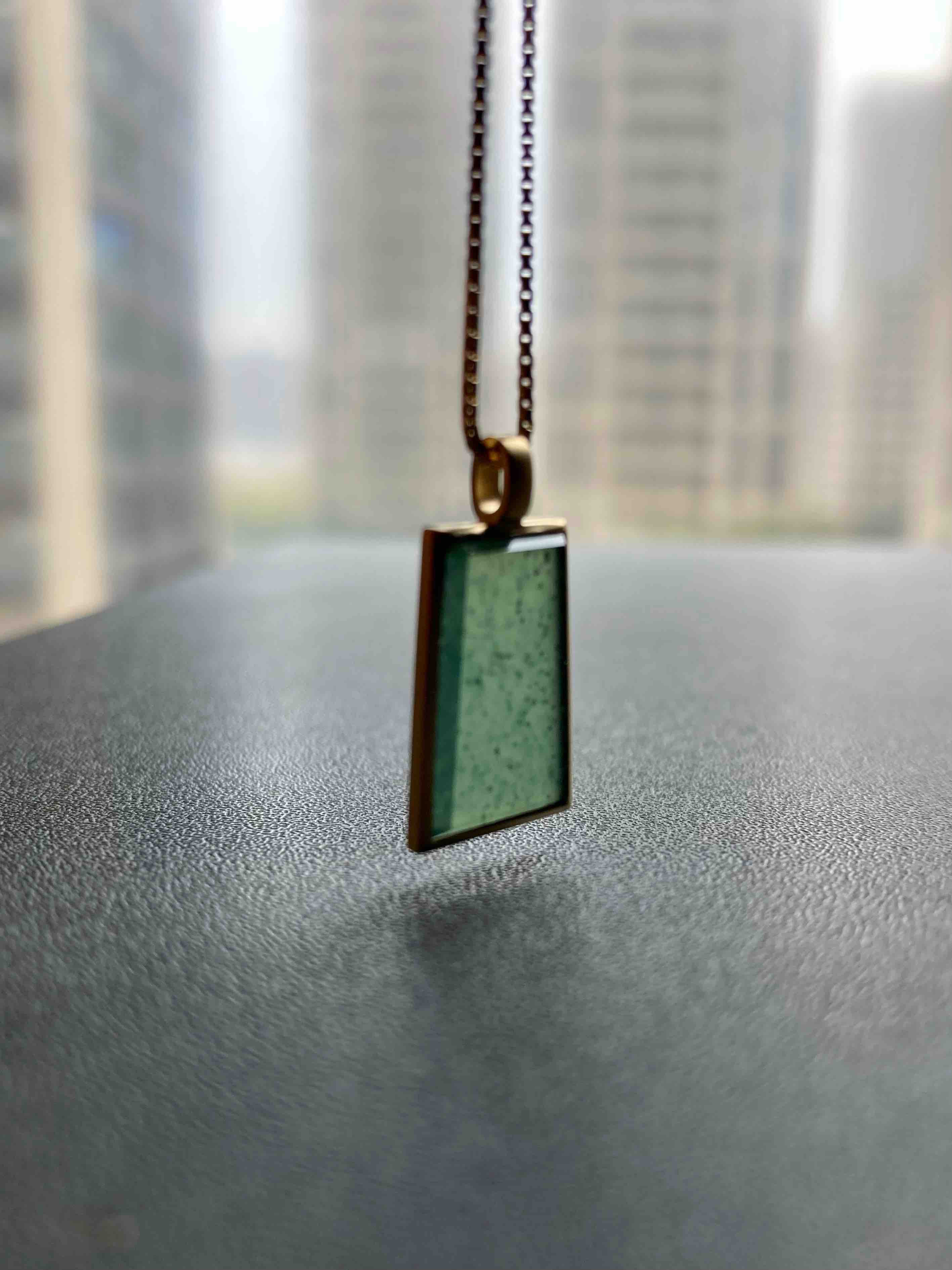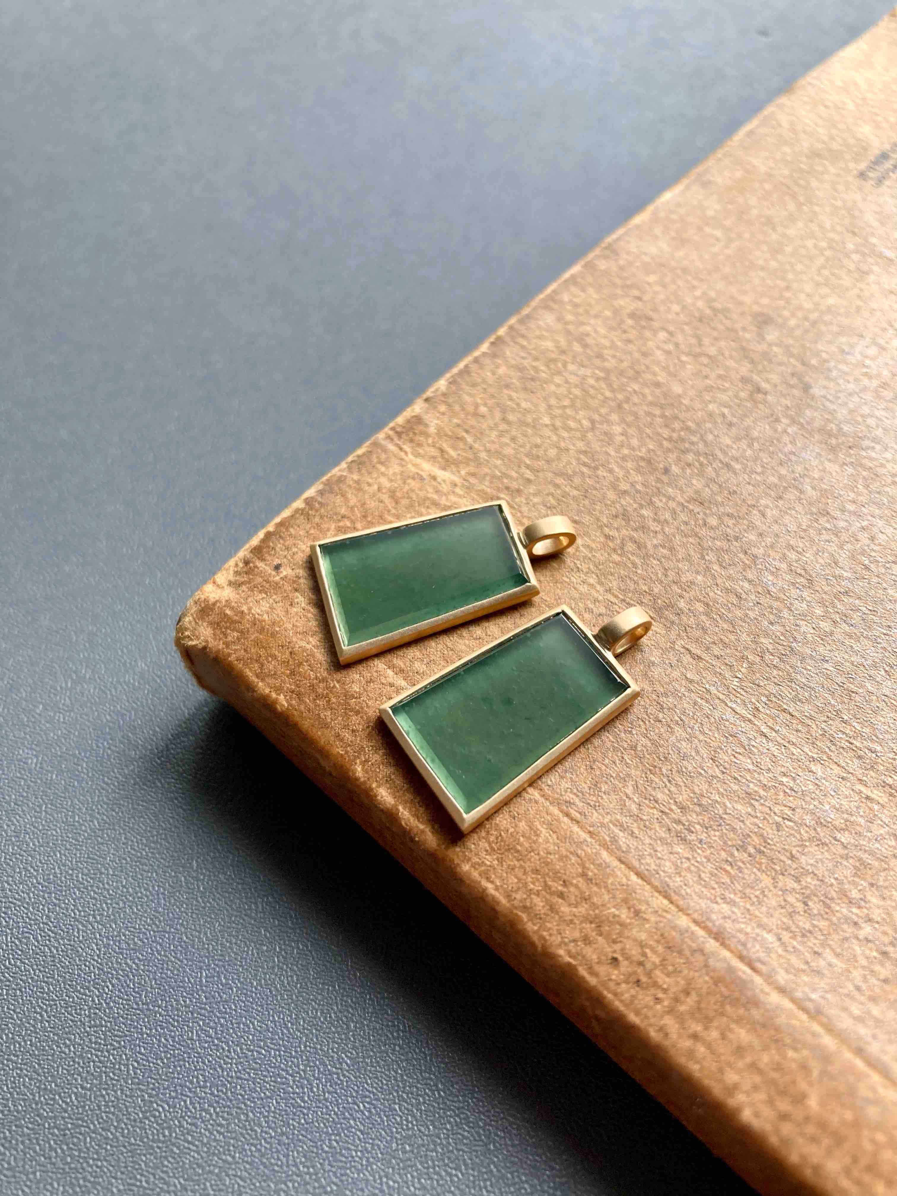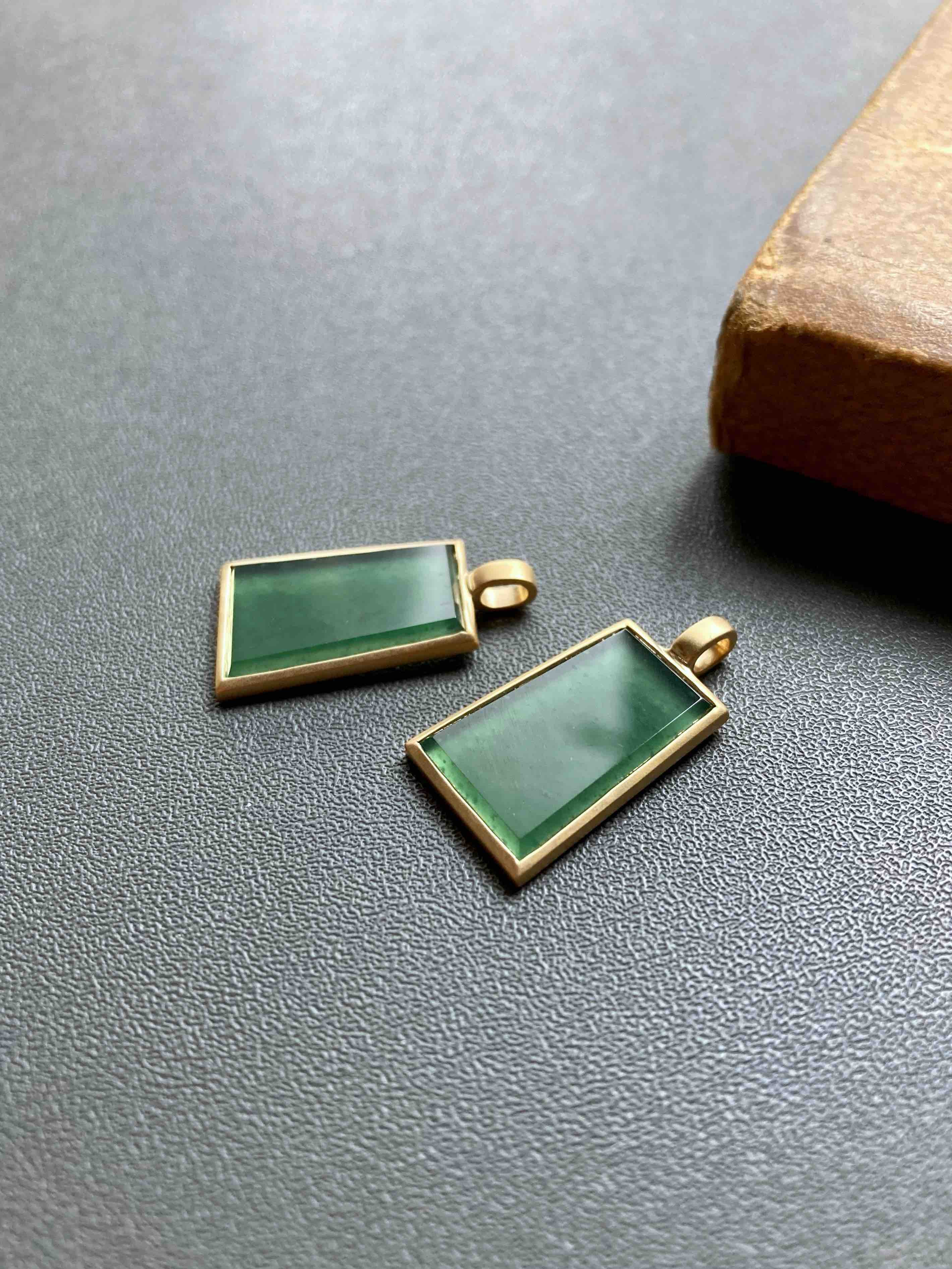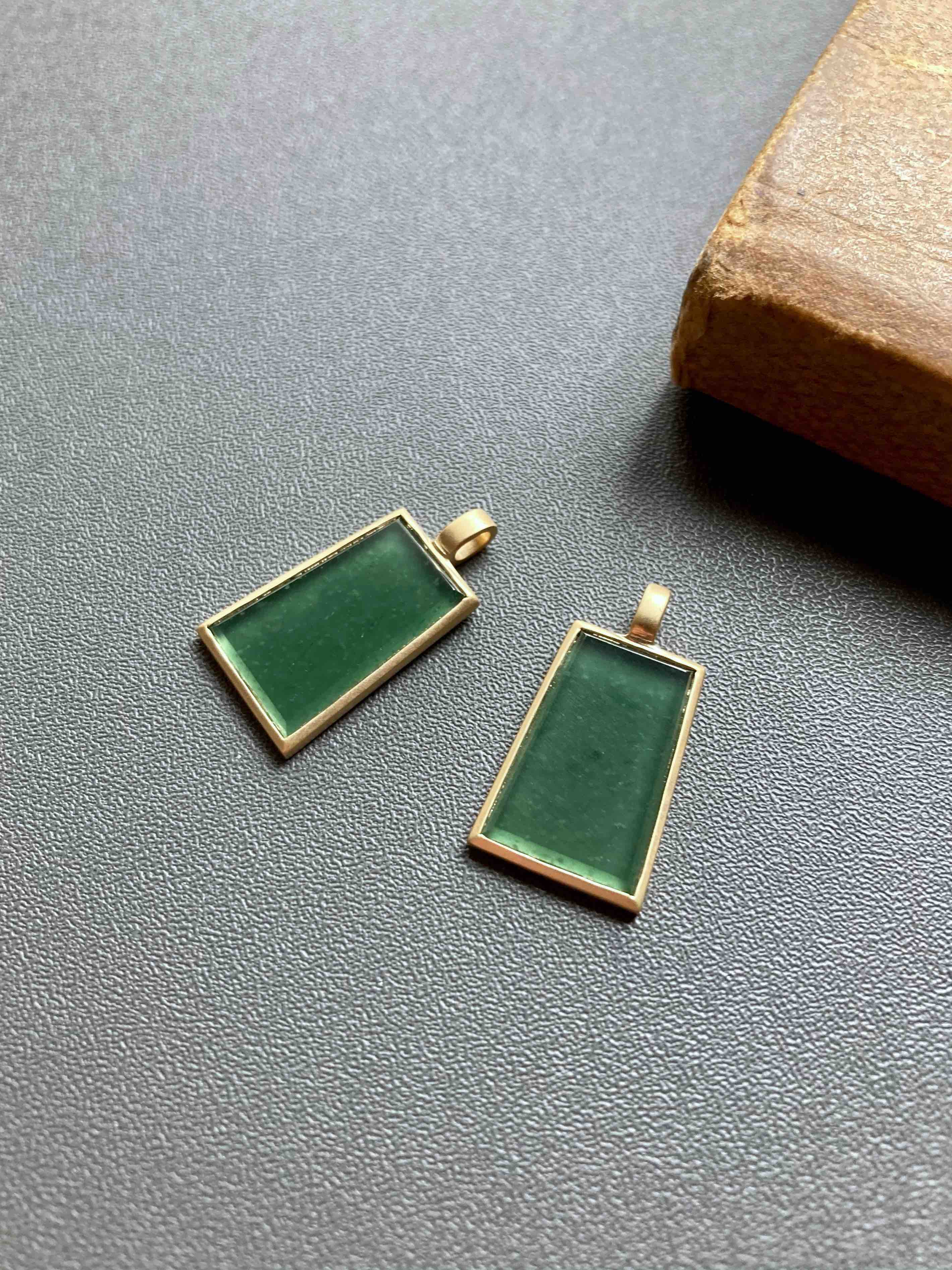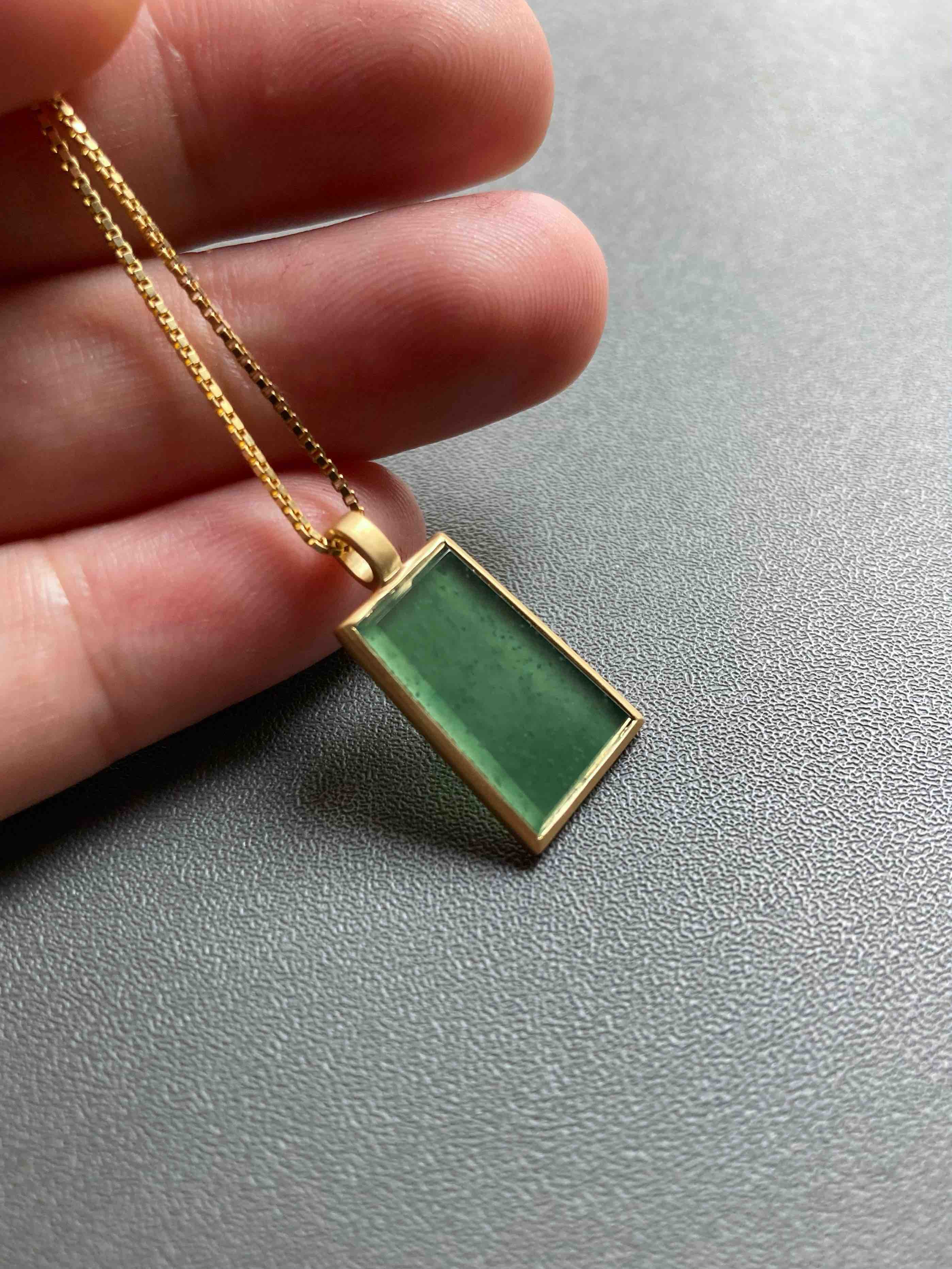 高冰种晴水绿翡翠平安无事牌18k黄金镶嵌