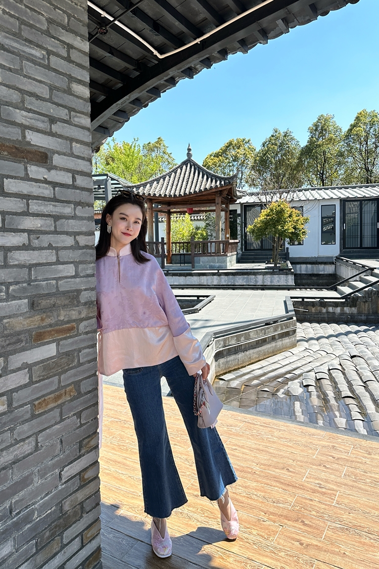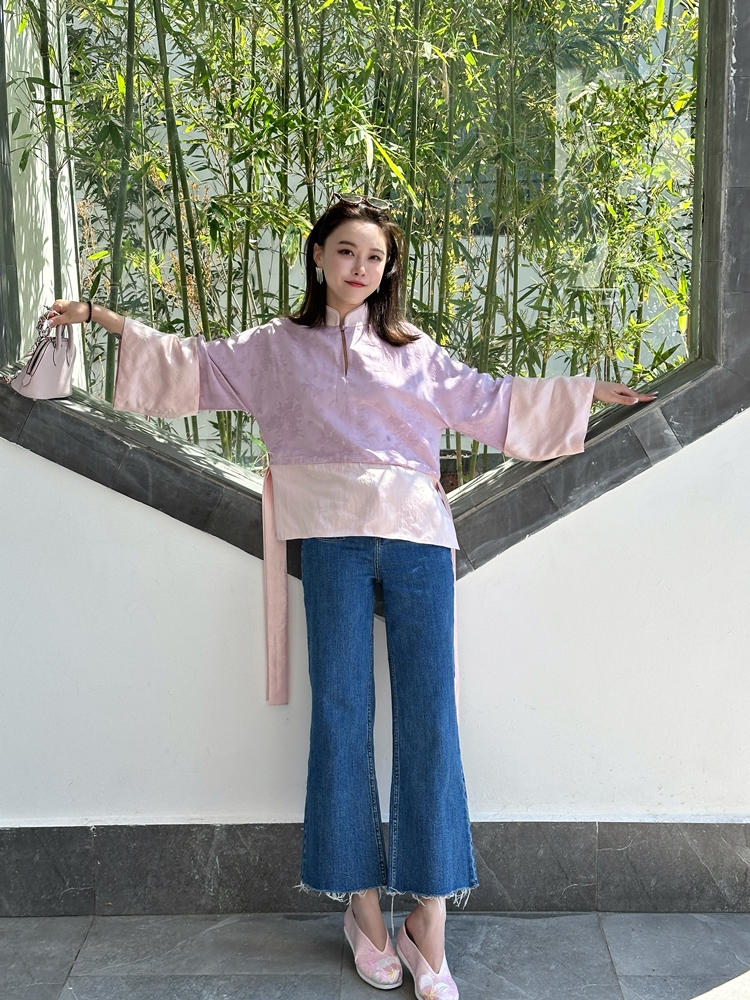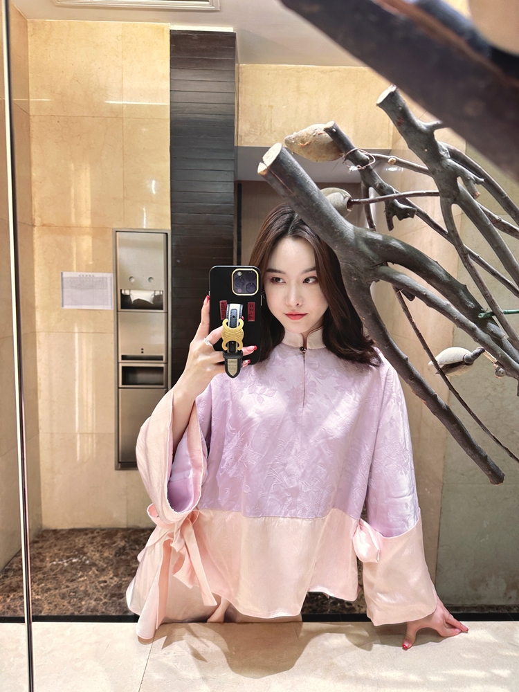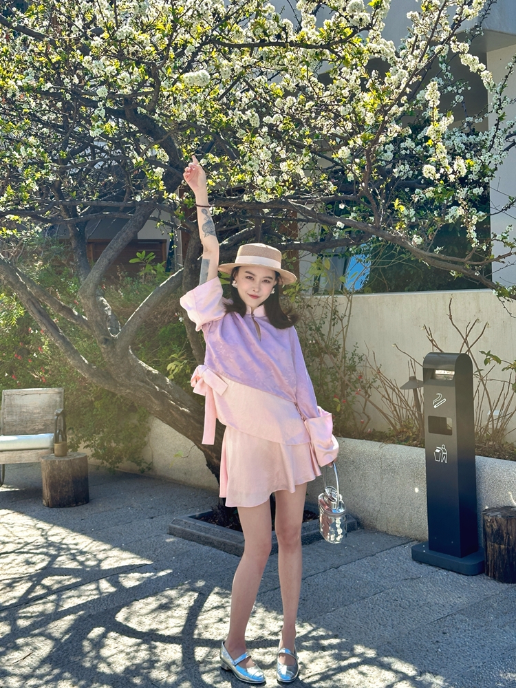 DUO智仙生粉标紫气东来好运少女新中式醋酸淡粉紫国风大褂和短裙