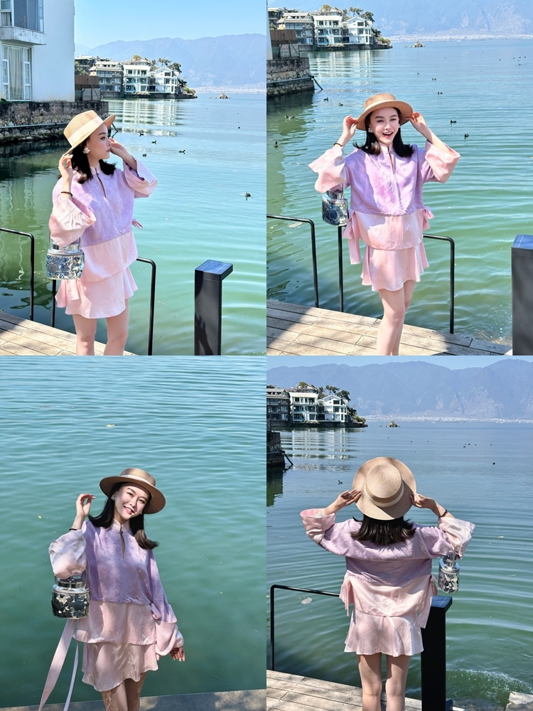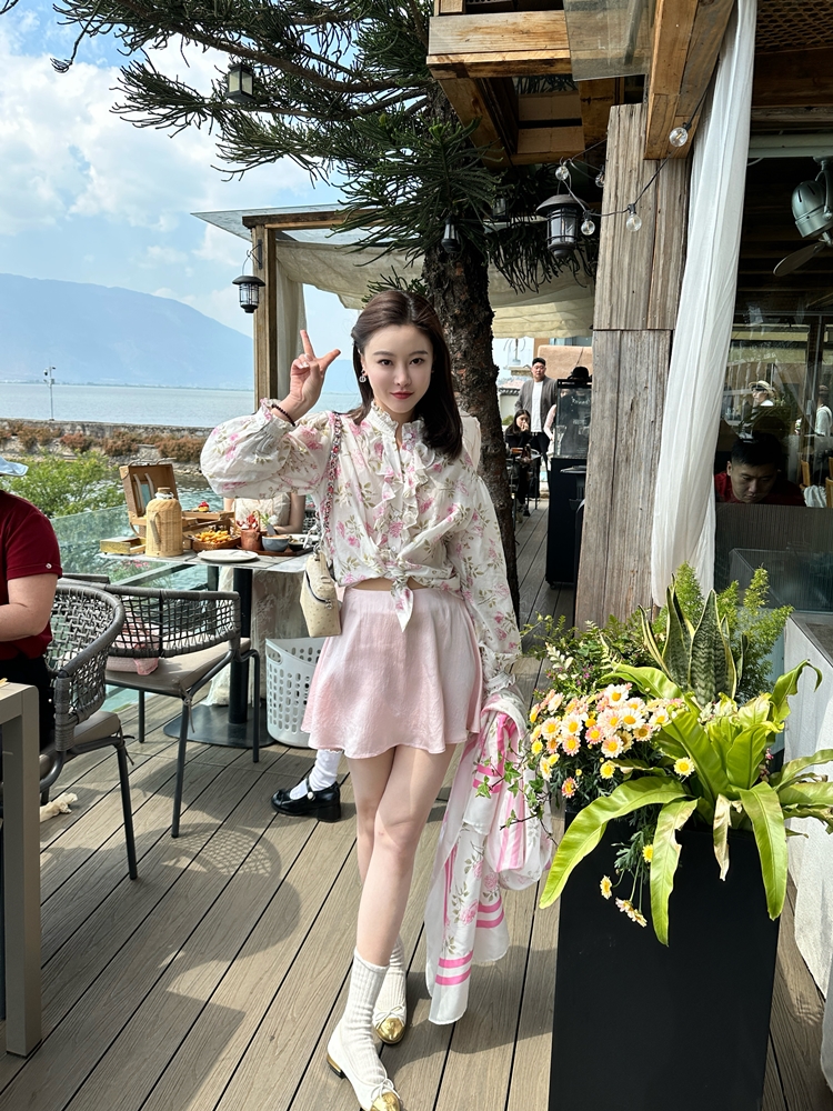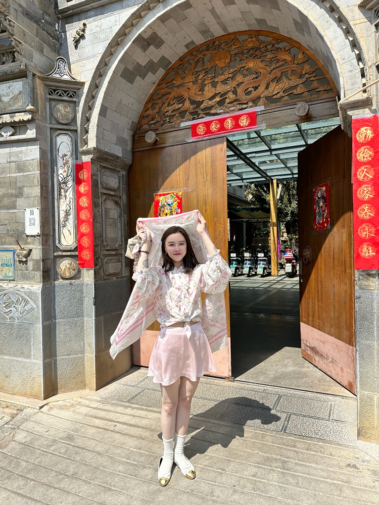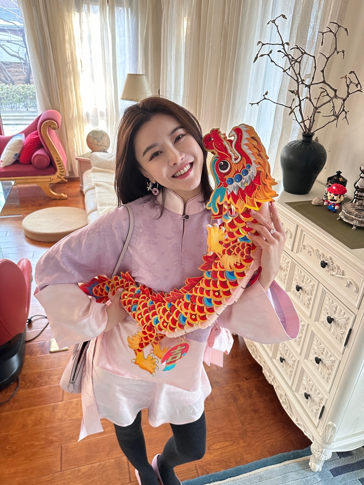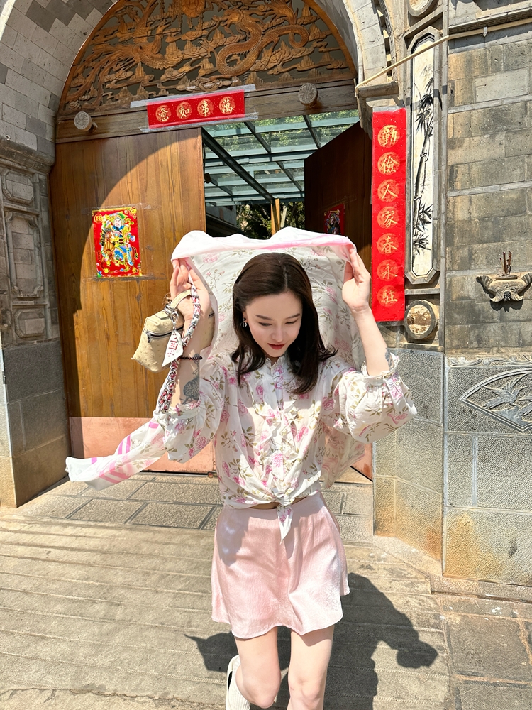 DUO智仙生粉标紫气东来好运少女新中式醋酸淡粉紫国风大褂和短裙