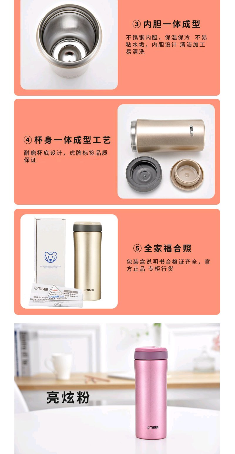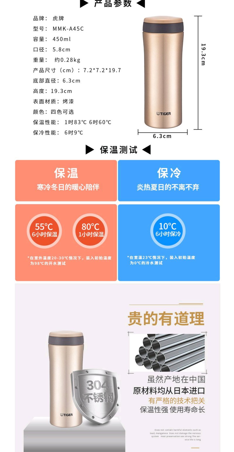 【6F】虎牌保温杯真空不锈钢办公杯 男女时尚水杯子MMK-A45C新品 450ml