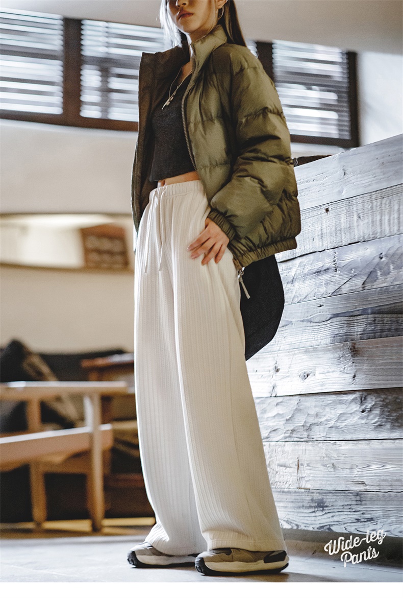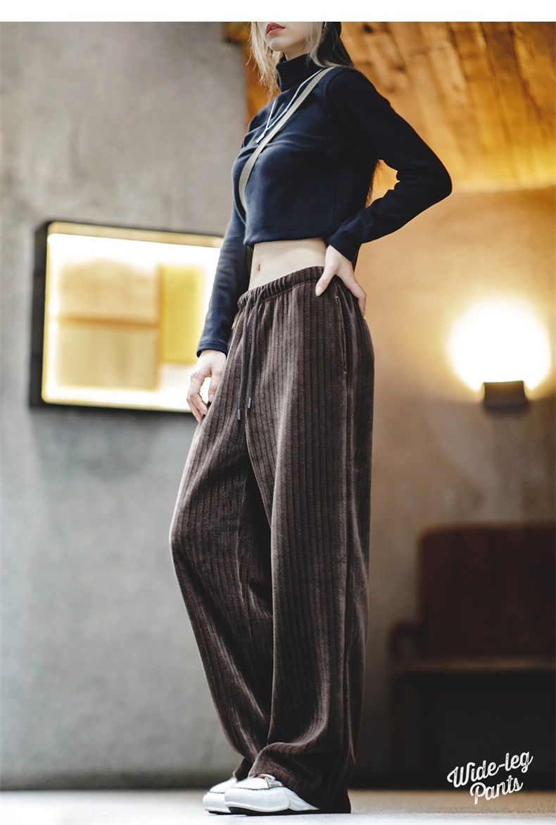 马登 美式复古雪尼尔直筒垂感阔腿长裤软糯风窄版显瘦休闲裤女