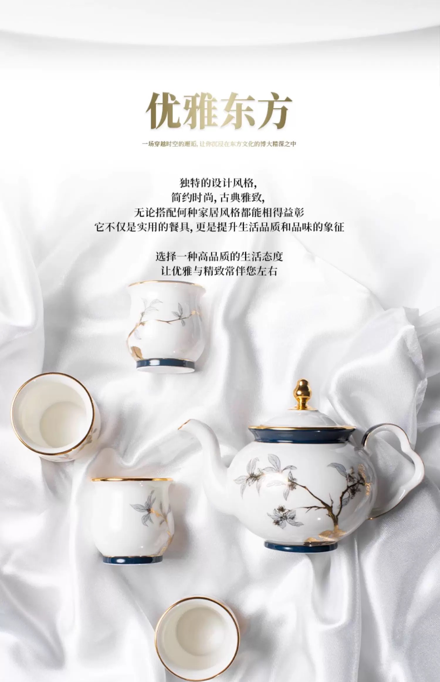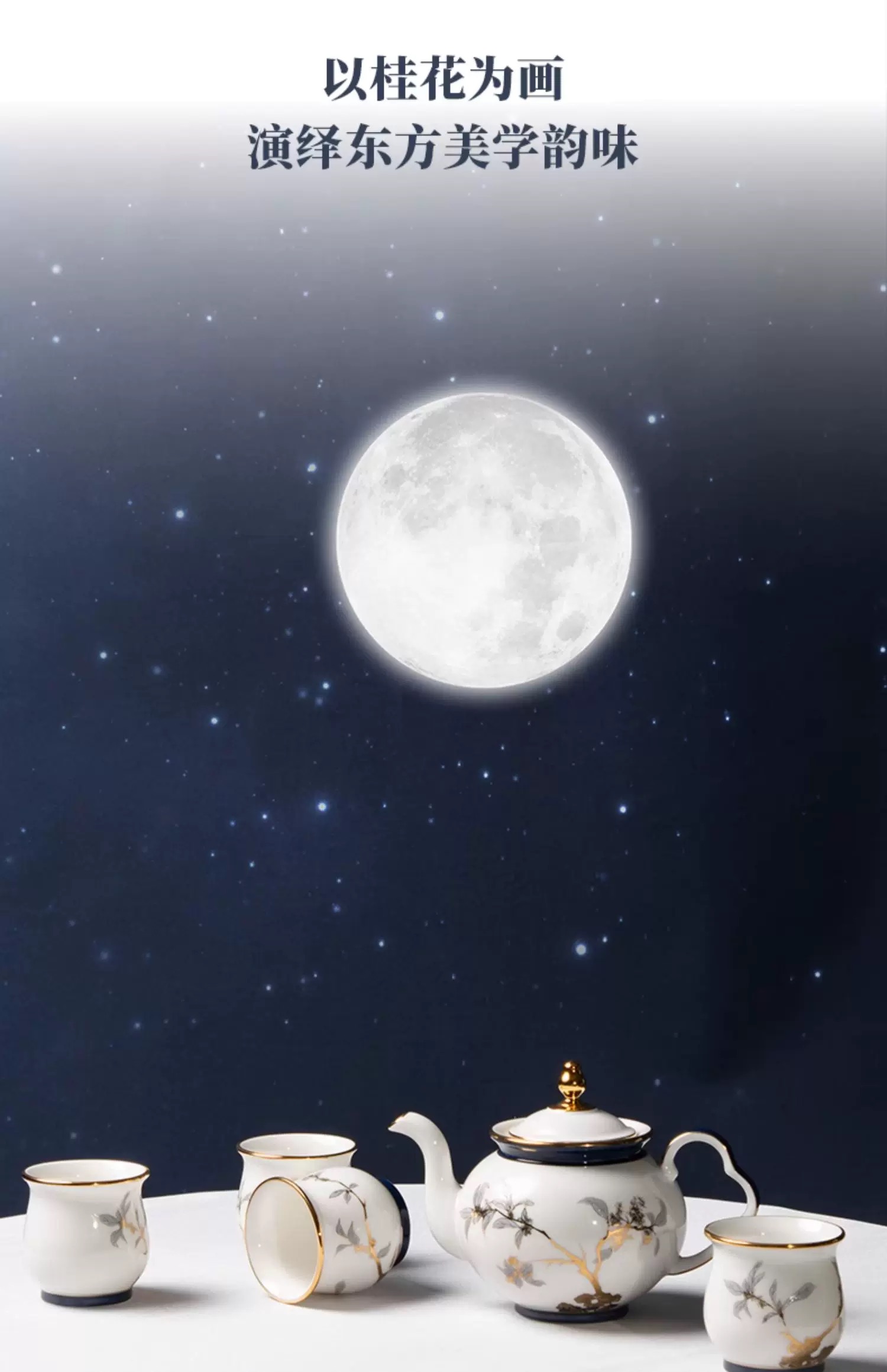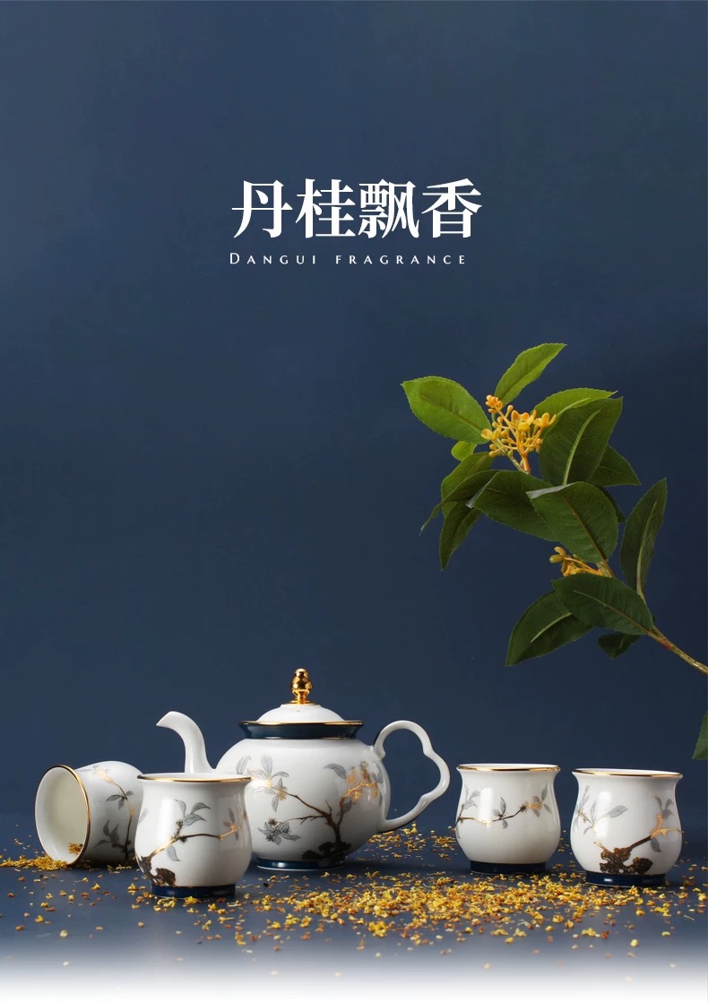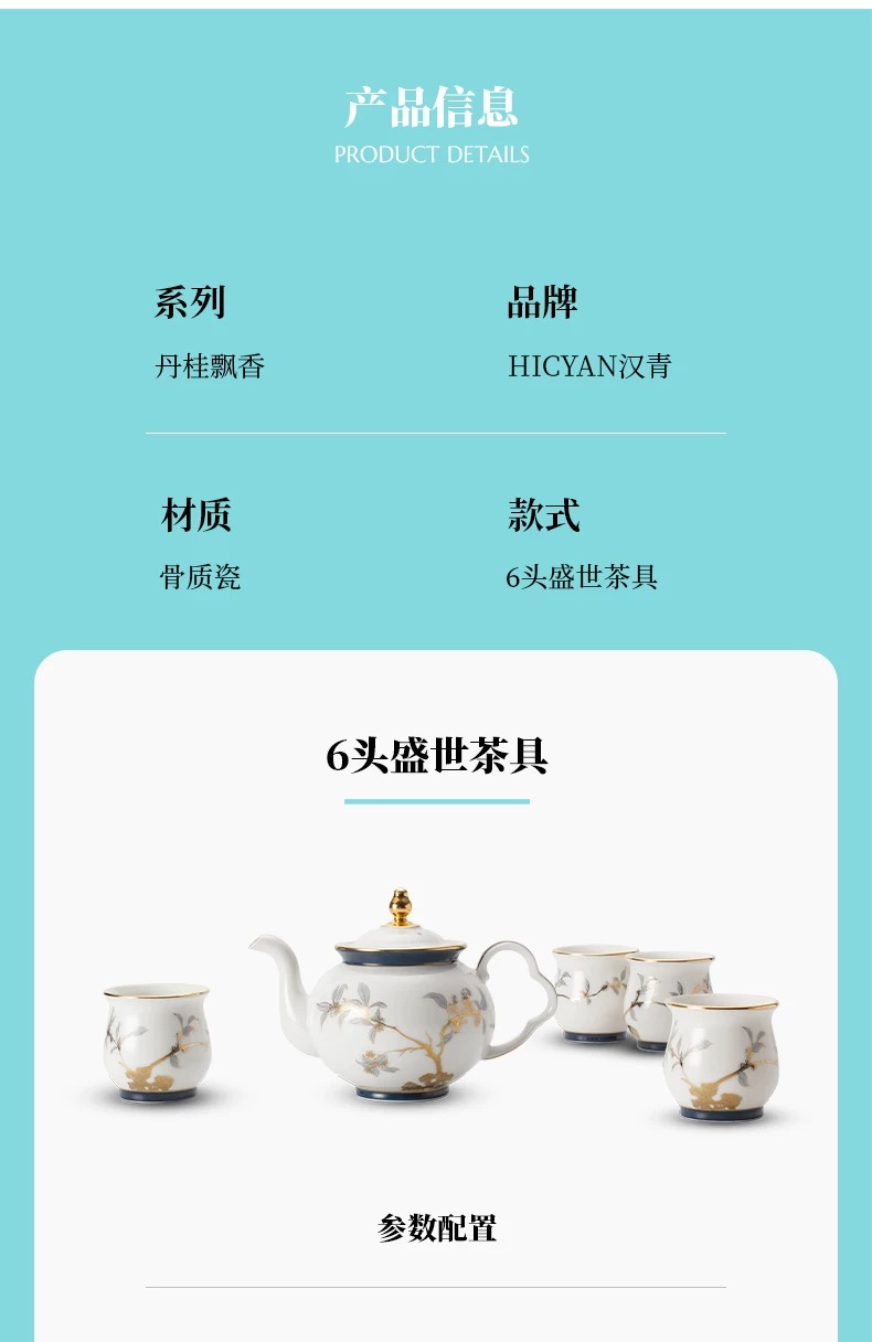 【6F】多样屋HICYAN国瓷「丹桂飘香」6头盛世茶具礼盒套装 高档 骨瓷 家用 中式