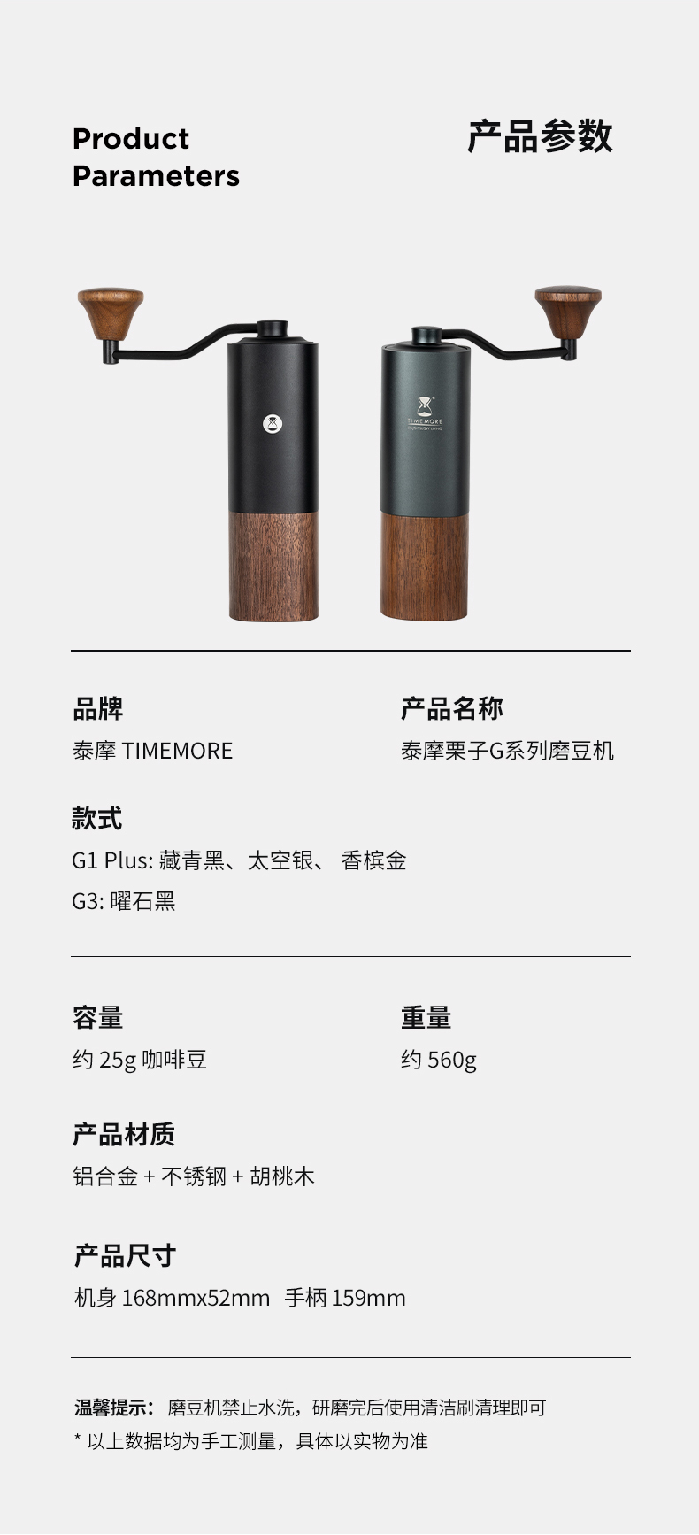 泰摩 栗子G1/G3 专业级手摇咖啡豆磨豆机 家用便携式手动研磨器