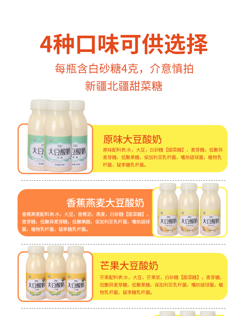 豆妃素酸奶 富含活性益生菌 助消化 元气满满小瓶装205g/瓶 大瓶装900g/瓶