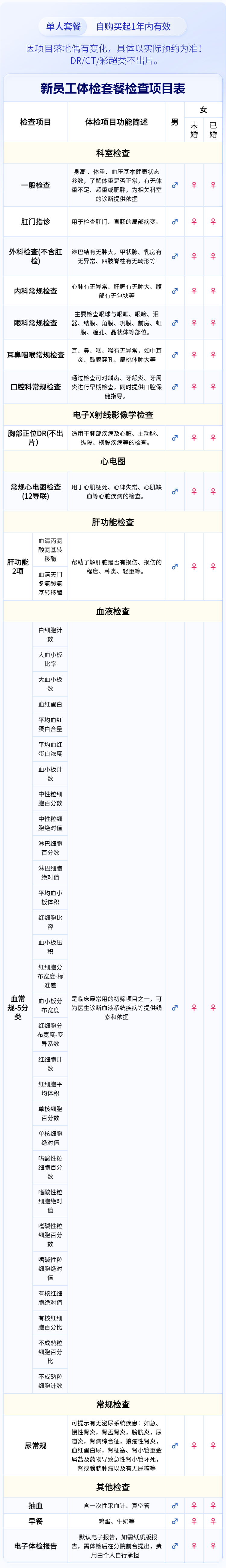 慈铭体检 新员工体检套餐 (男女通用) 仅限北京地区