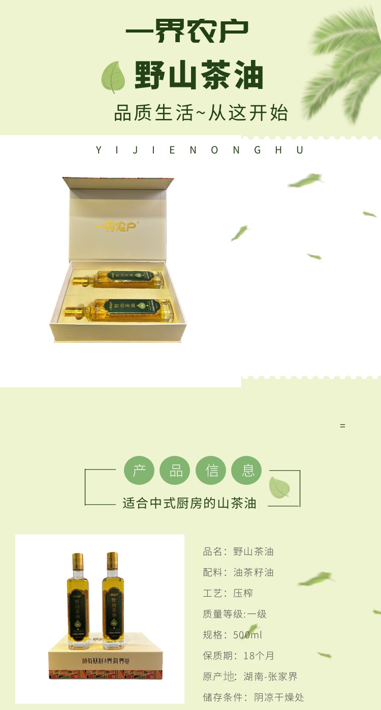 一界农户野山茶油500ml/瓶