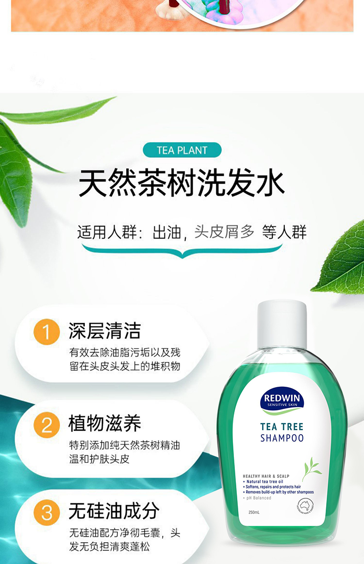 【保税仓/香港直邮】澳洲维特护Redwin天然茶树油草本无硅油洗发水250ml
