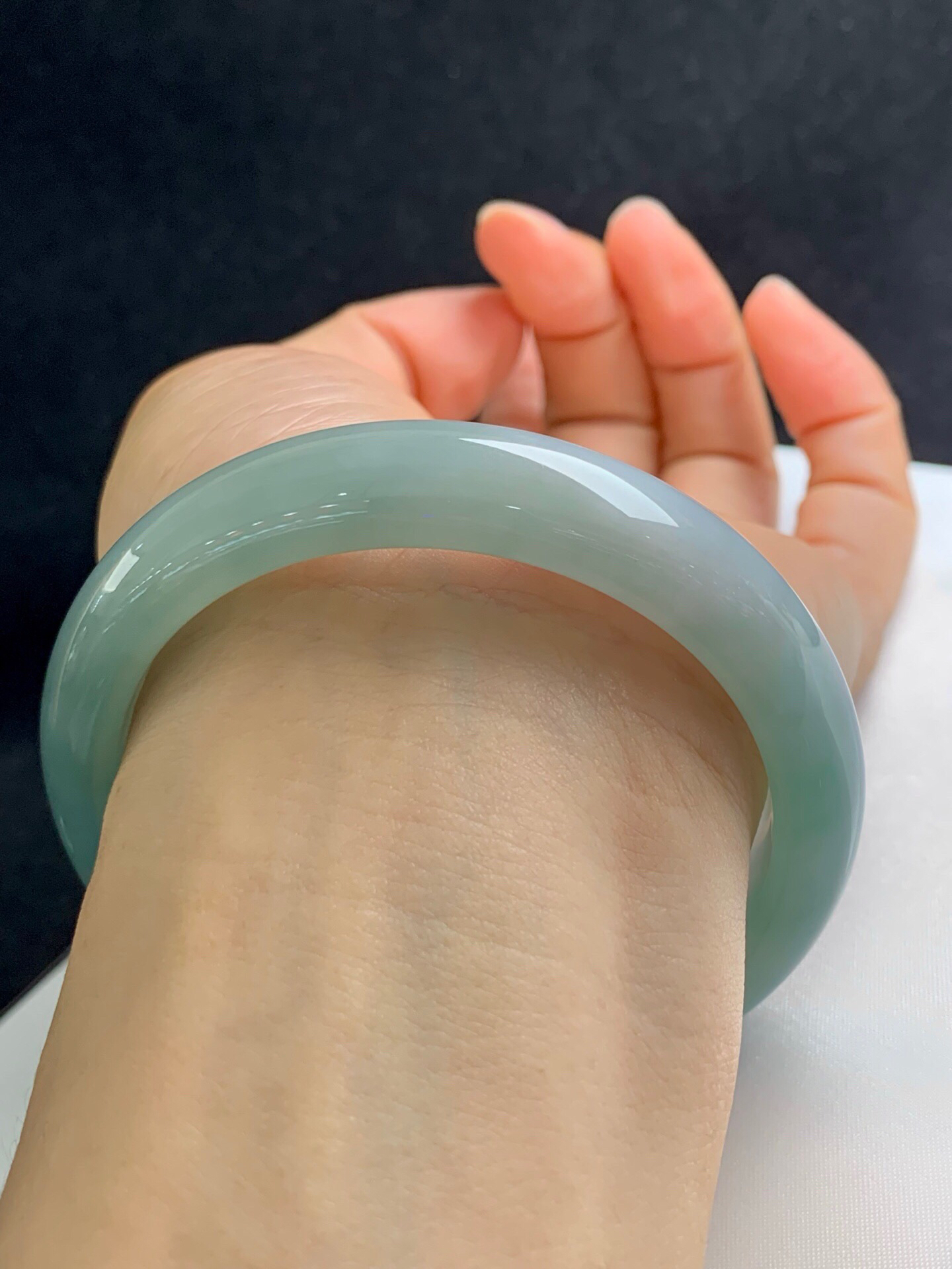 620671,59.6圈口,糯化油青正圈平安镯,底子胶润,完美,尺寸:59.6-12.8-8.5,超值价💰11400 #优石客珠宝#香玉荟萃
