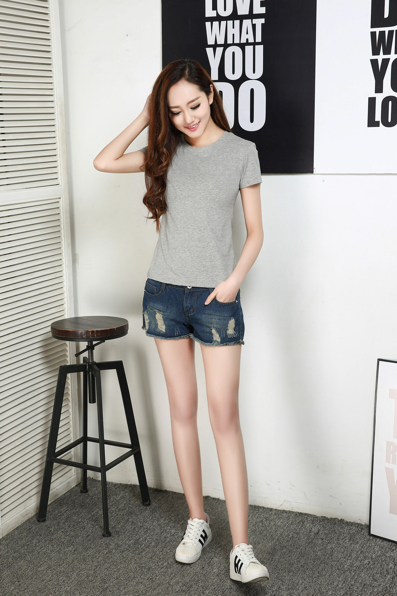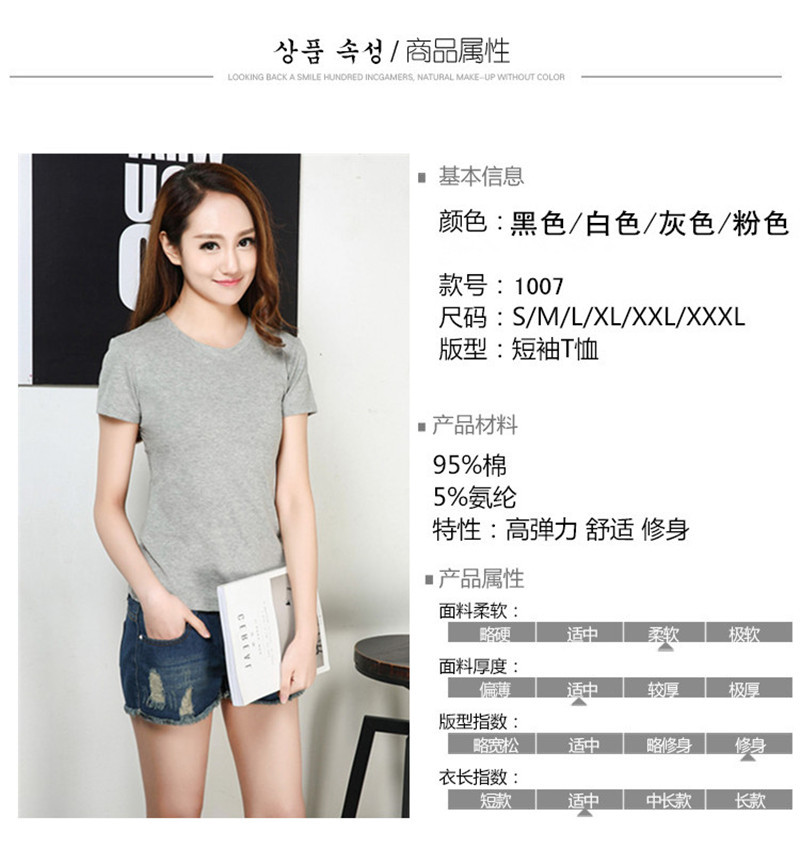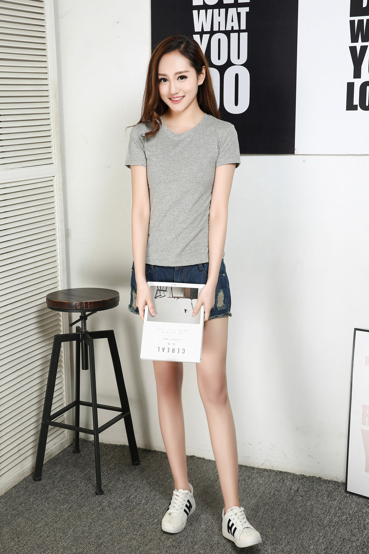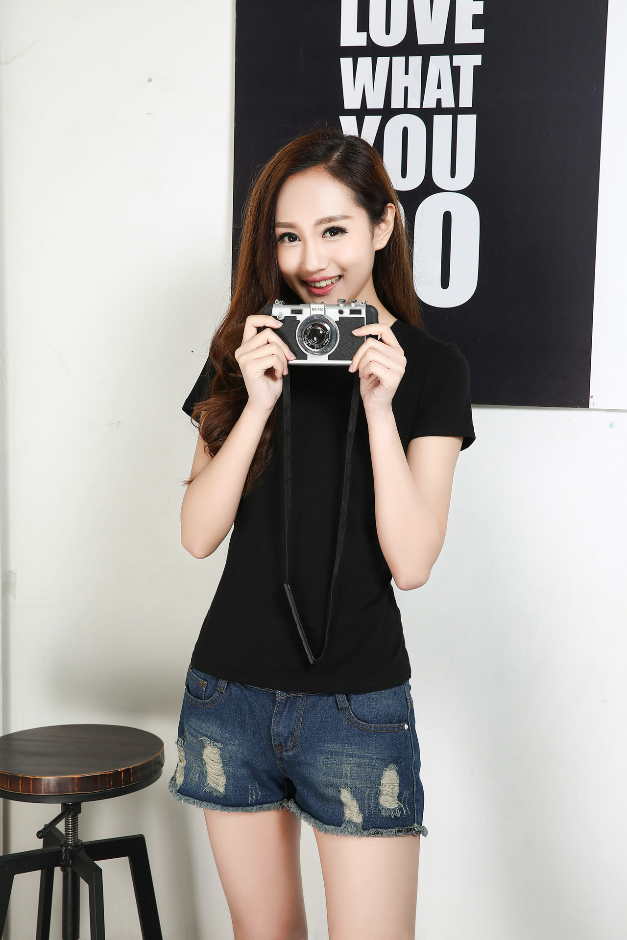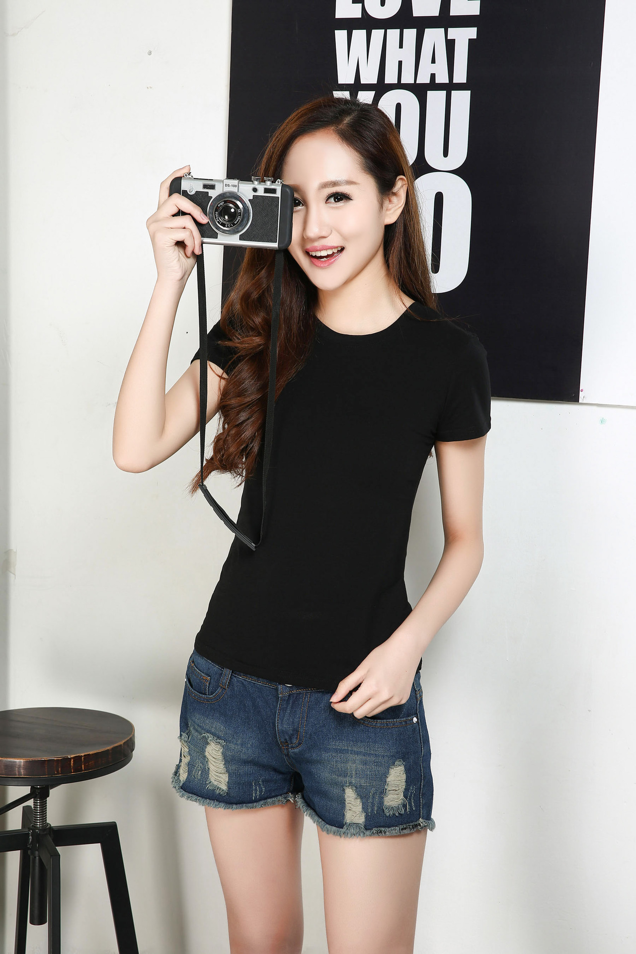 【服饰鞋包】新款白色修身女士t恤夏季纯色圆领短袖体恤纯棉女装女式上衣